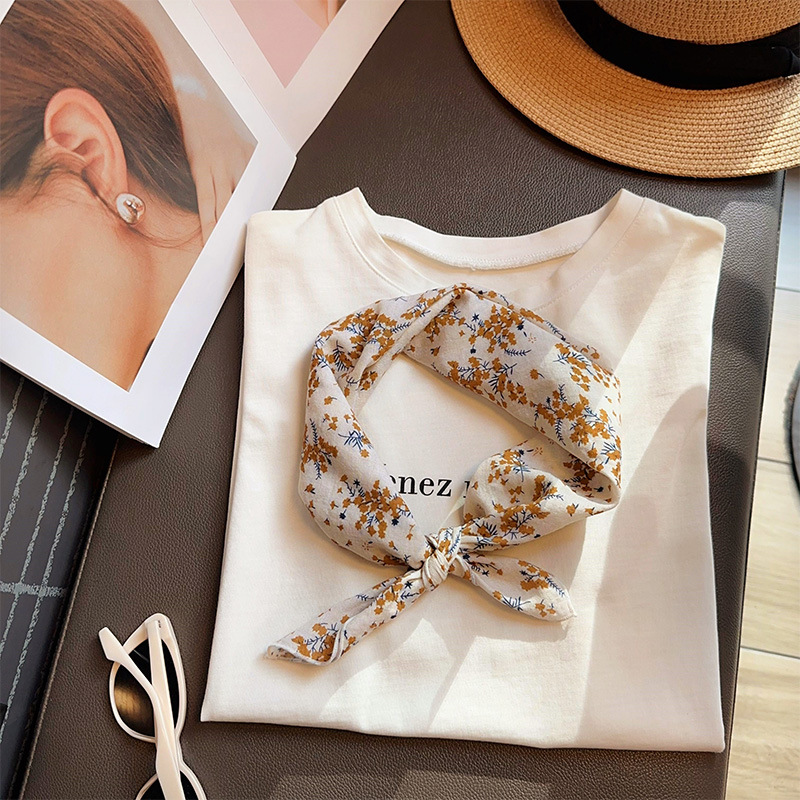 프랑스 로맨틱 플로랄 코튼 스퀘어 스카프 토이 실크 스카프 여성 올 매치 예술적 헤어 밴드 장식 봄과 여름 새로운 작은 스카프스토어 가기