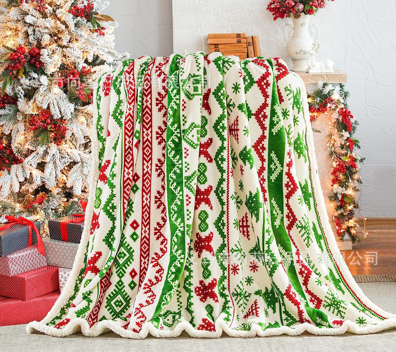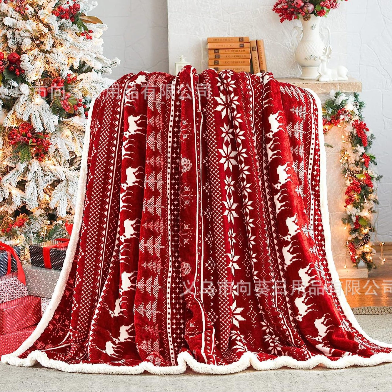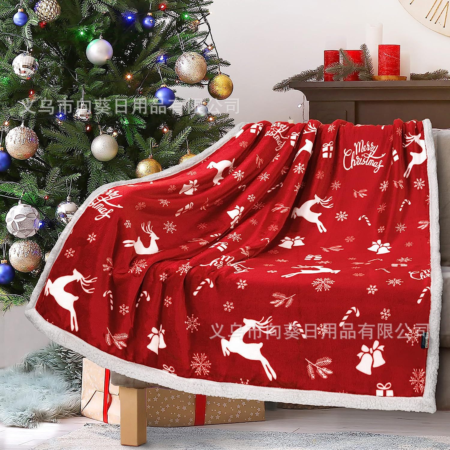 공장 직접 판매 아마존 크리스마스 엘크 눈사람 진저 브레드 남자 눈송이 인쇄 더블 레이어 두꺼운 침실 소파 담요스토어 가기