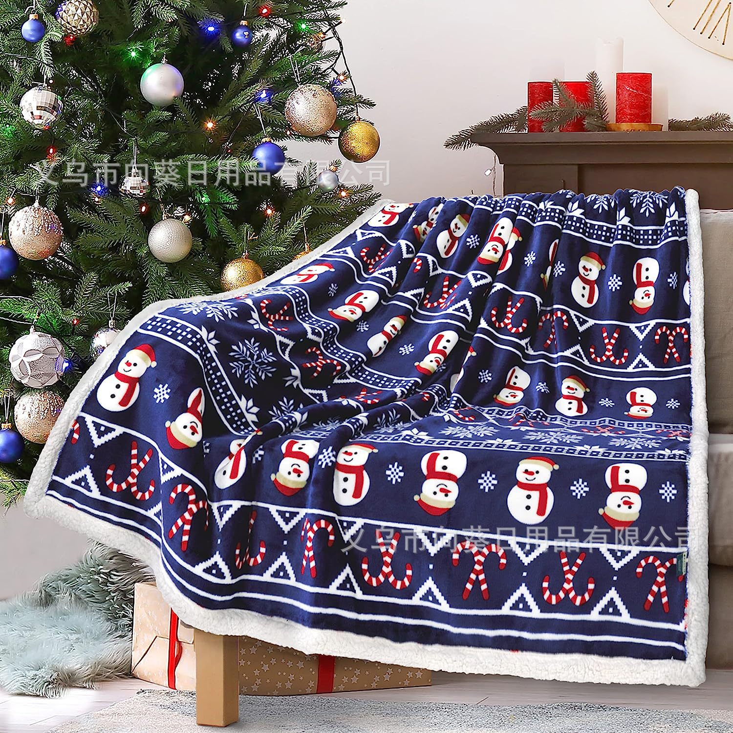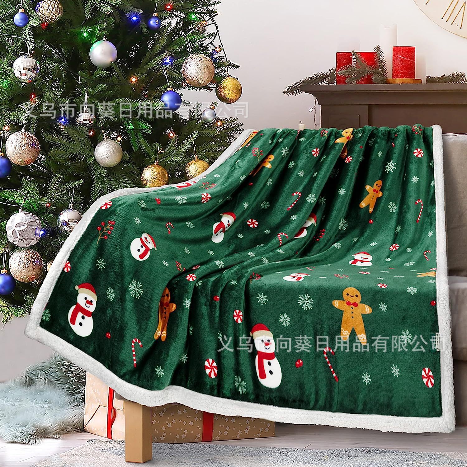 공장 직접 판매 아마존 크리스마스 엘크 눈사람 진저 브레드 남자 눈송이 인쇄 더블 레이어 두꺼운 침실 소파 담요