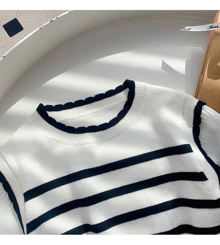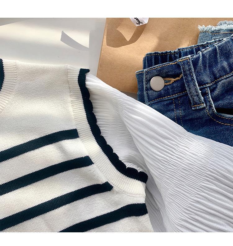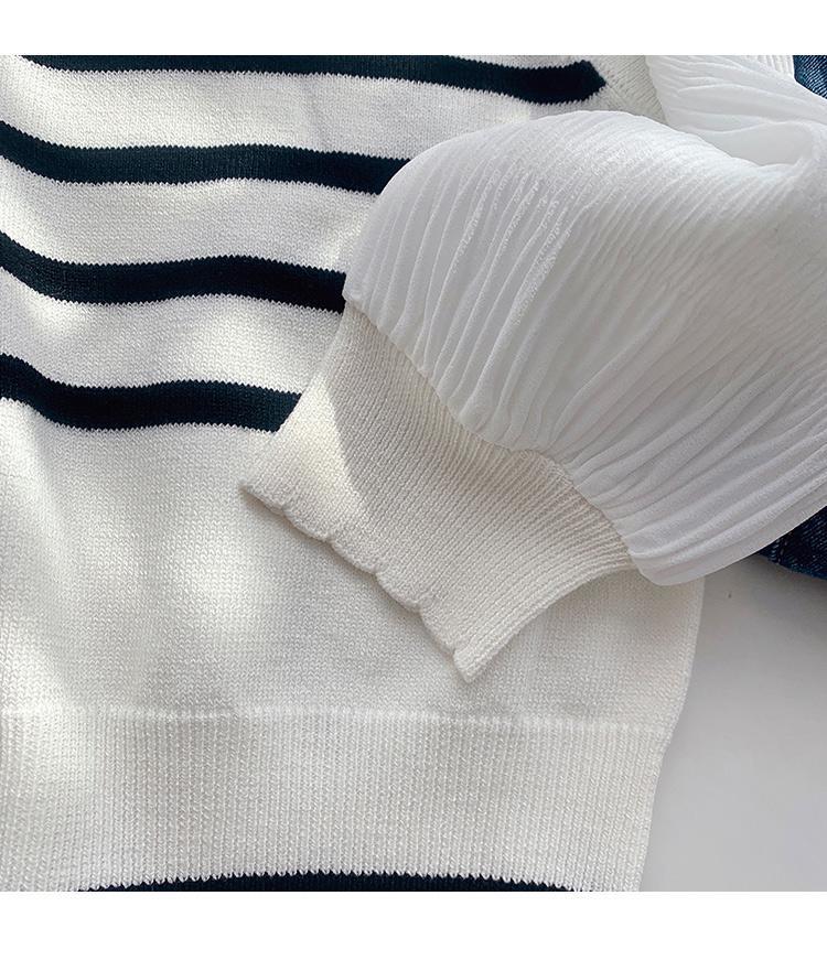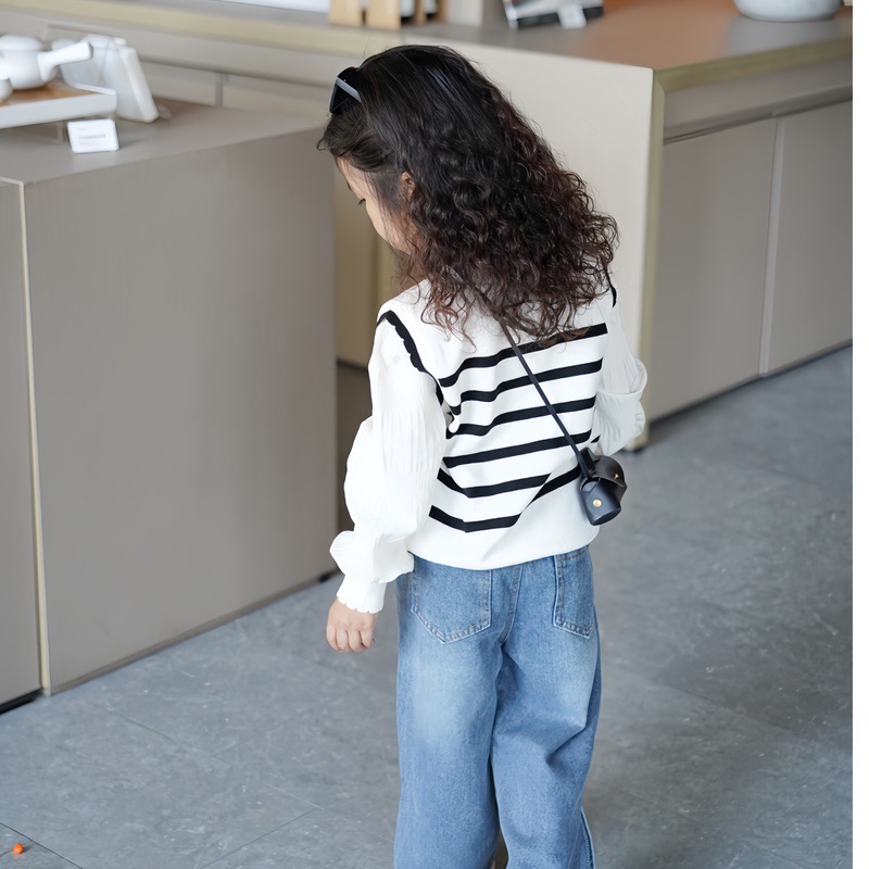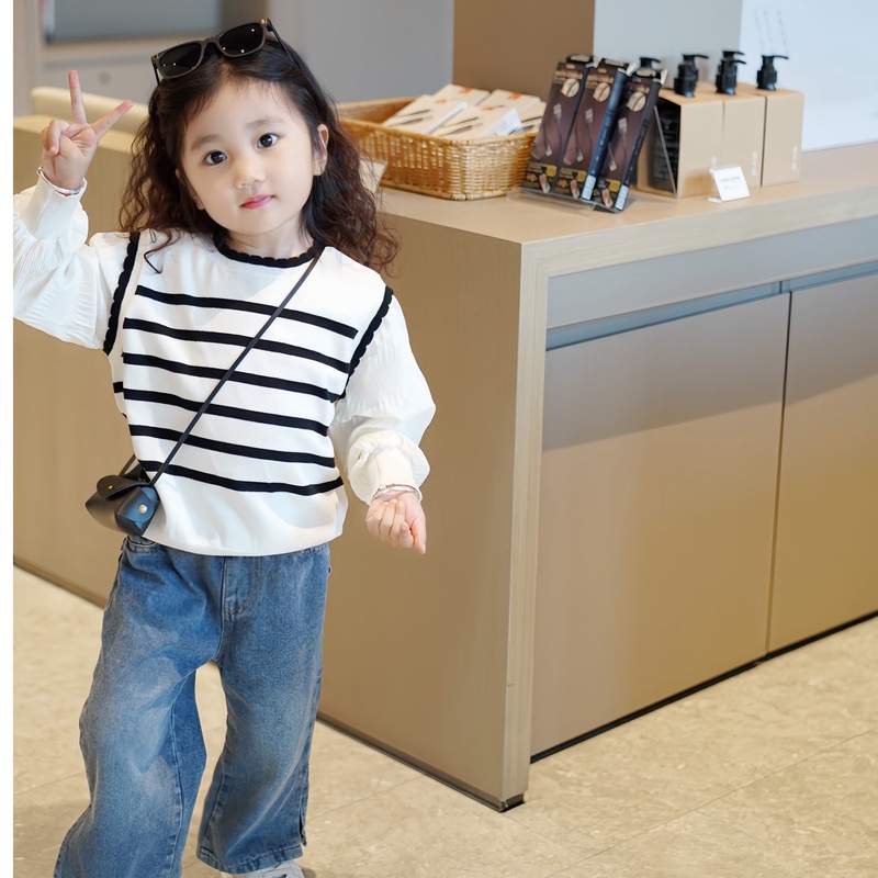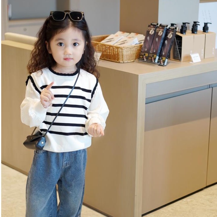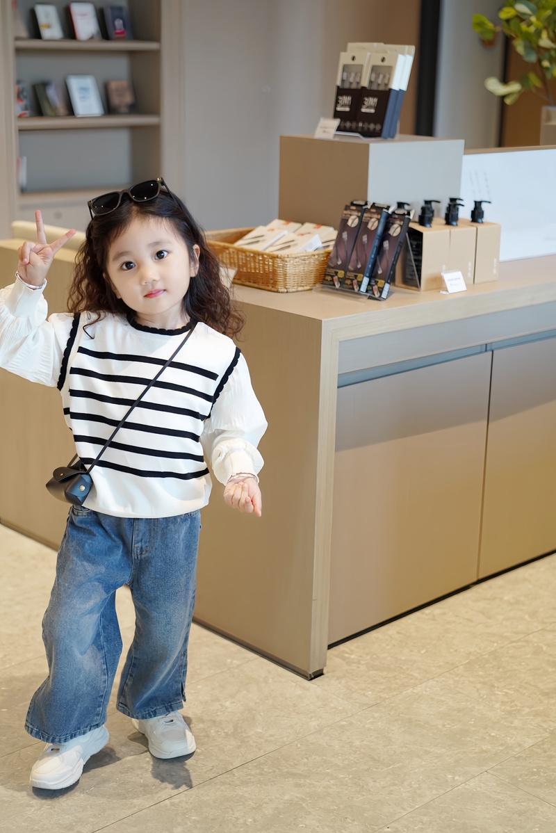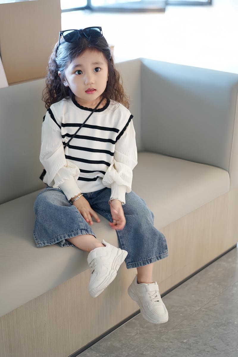 여아 상의 인기 투피스 스타일 니트웨어 여아 봄 얇은 스트라이프 상의 아동복 도매스토어 가기