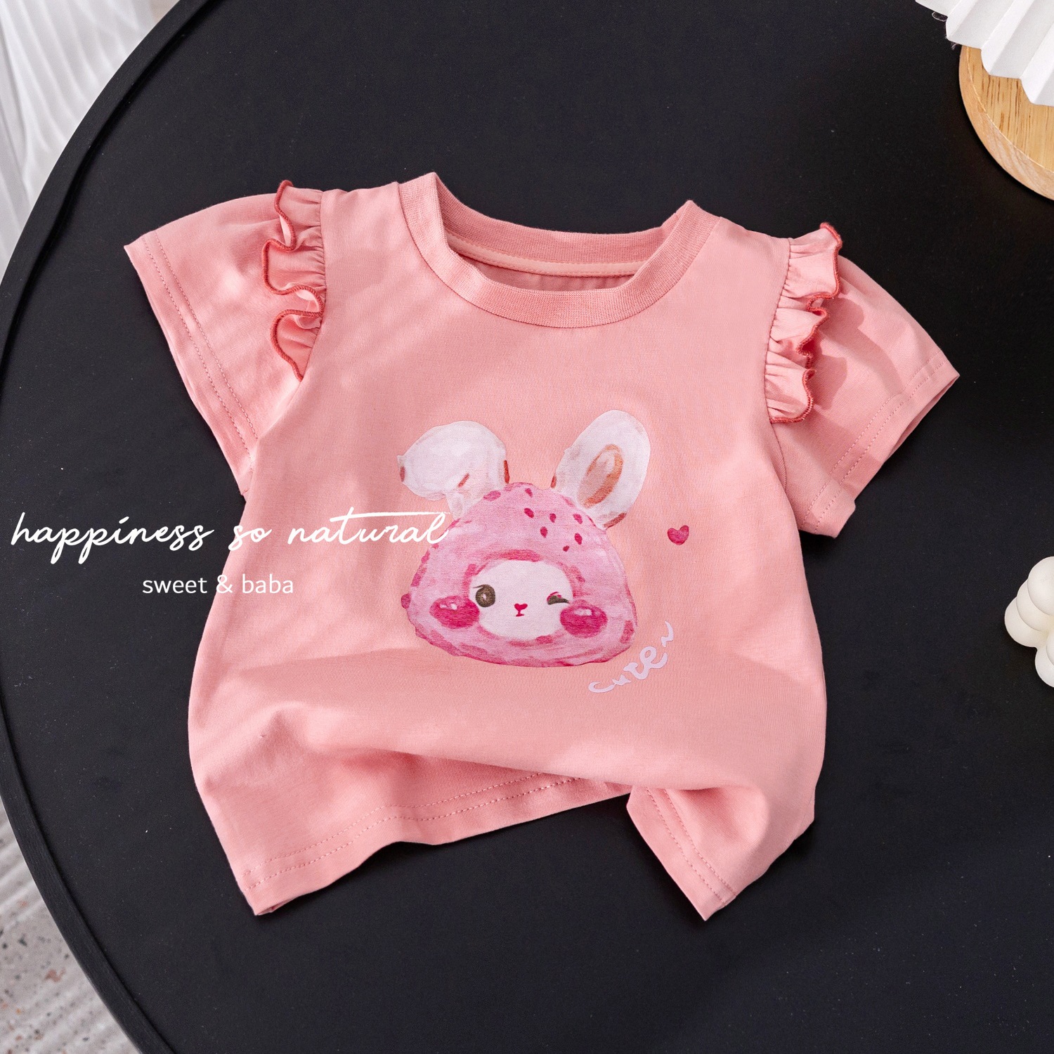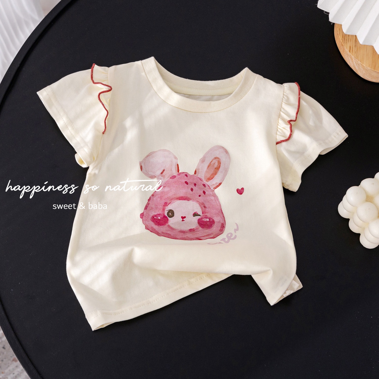 여자 반소매 티셔츠 한국식 인쇄 토끼 반소매 걸스 패셔너블 플라잉 슬리브 여름 올매치 베이스