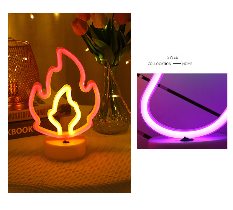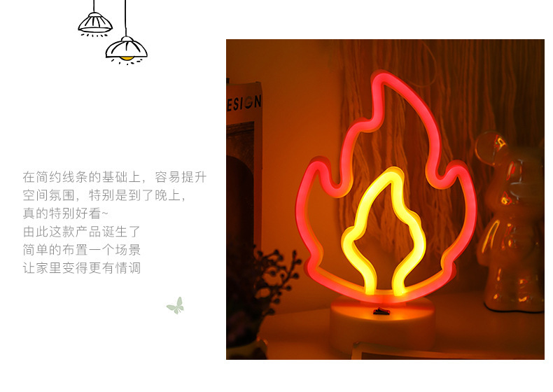 새로운 LED 스타일 빛 한국 스타일 장식 밤 빛 크리스마스 빛 라운드 베이스 불꽃 네온 빛스토어 가기