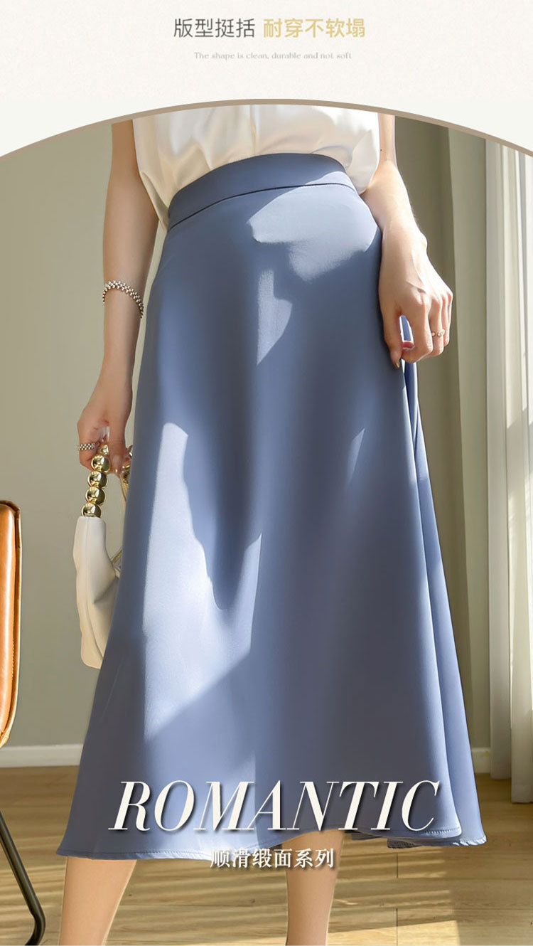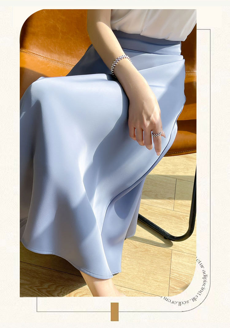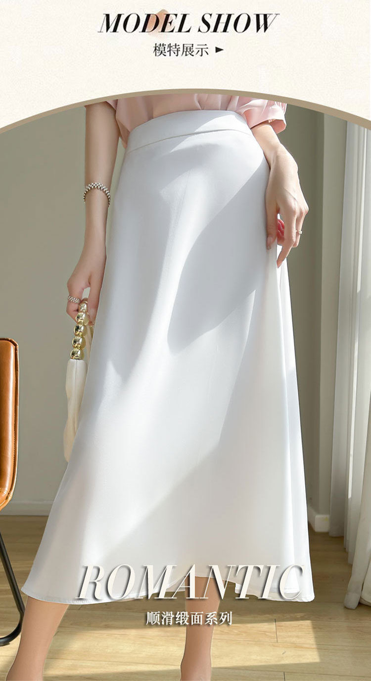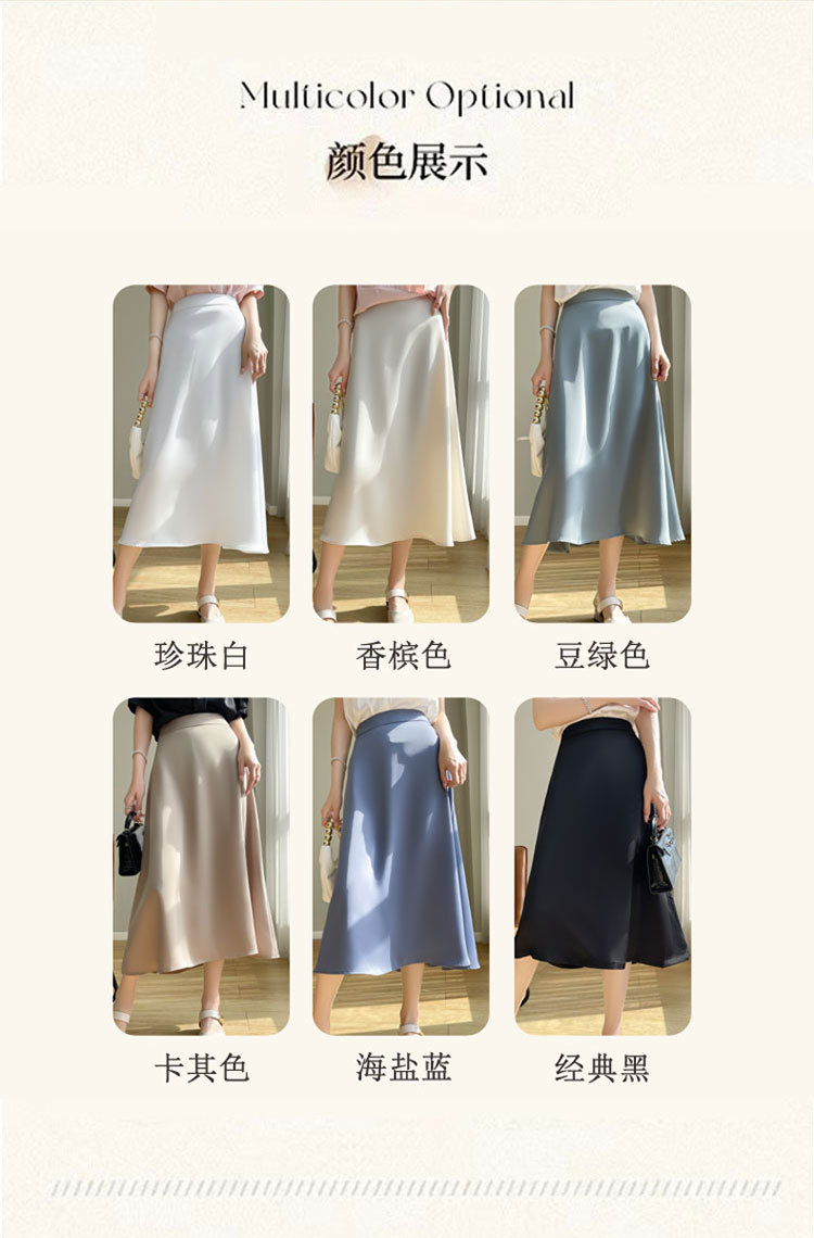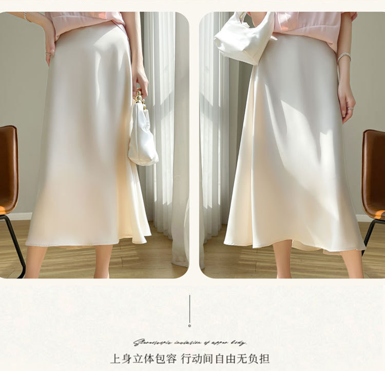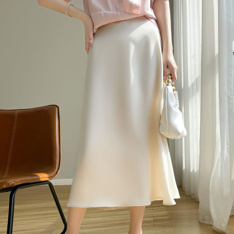 여름 새로운 여성의 단색 높은 허리 우아한 모든 경기 중간 길이 슬림핏 실크 스커트스토어 가기