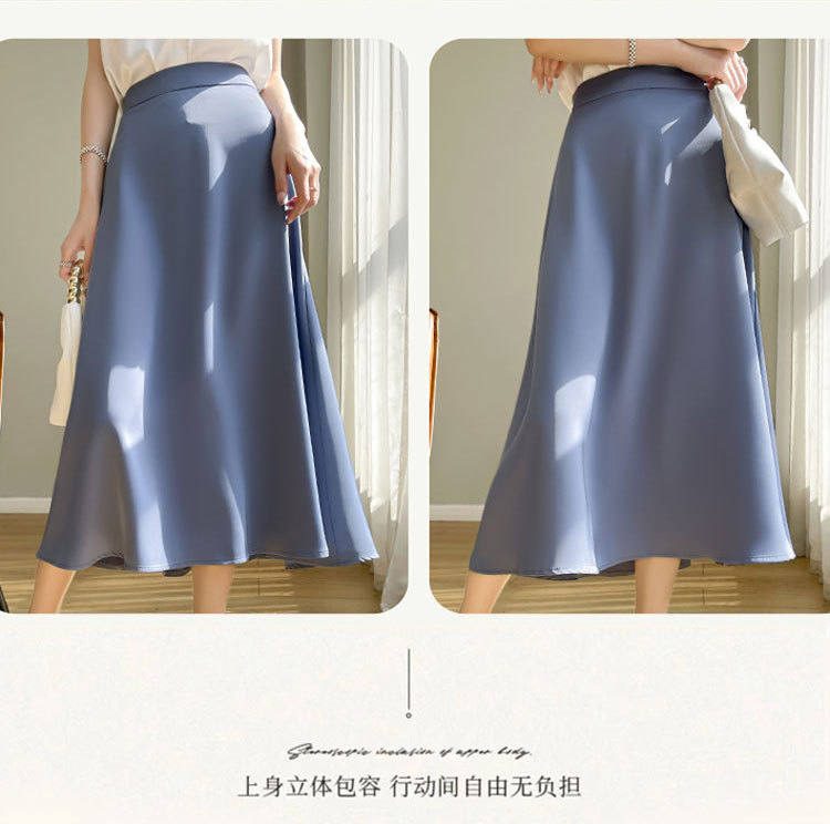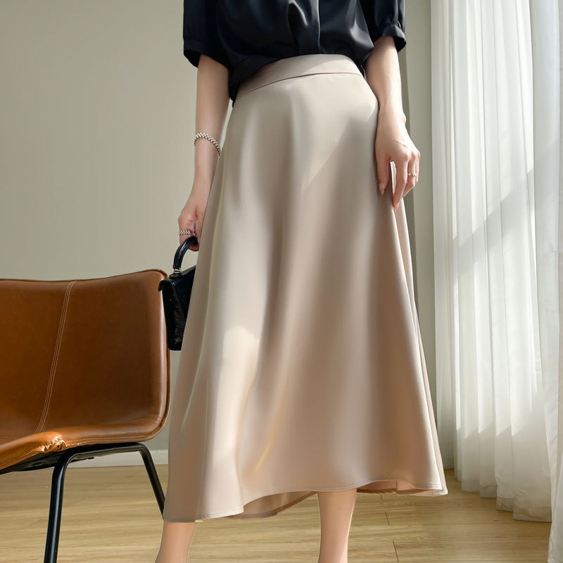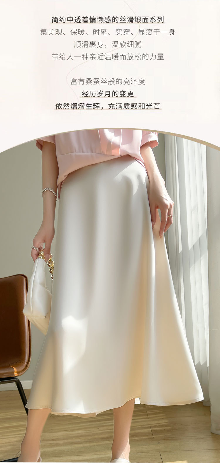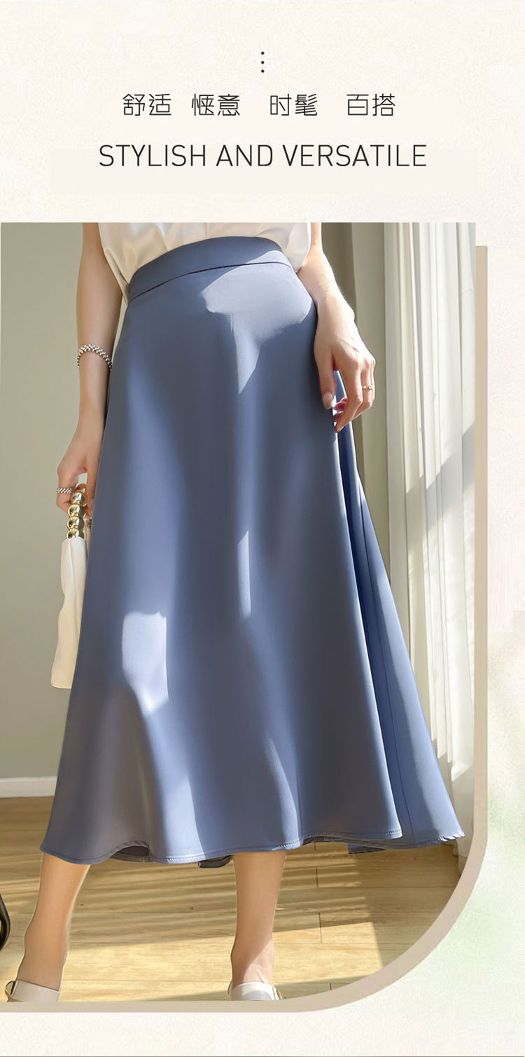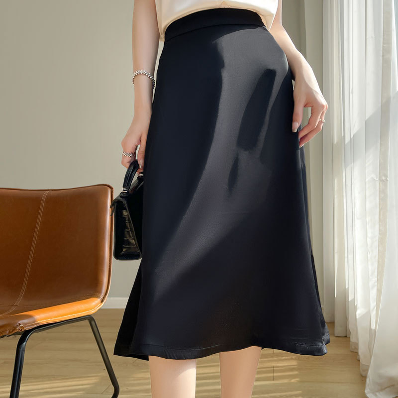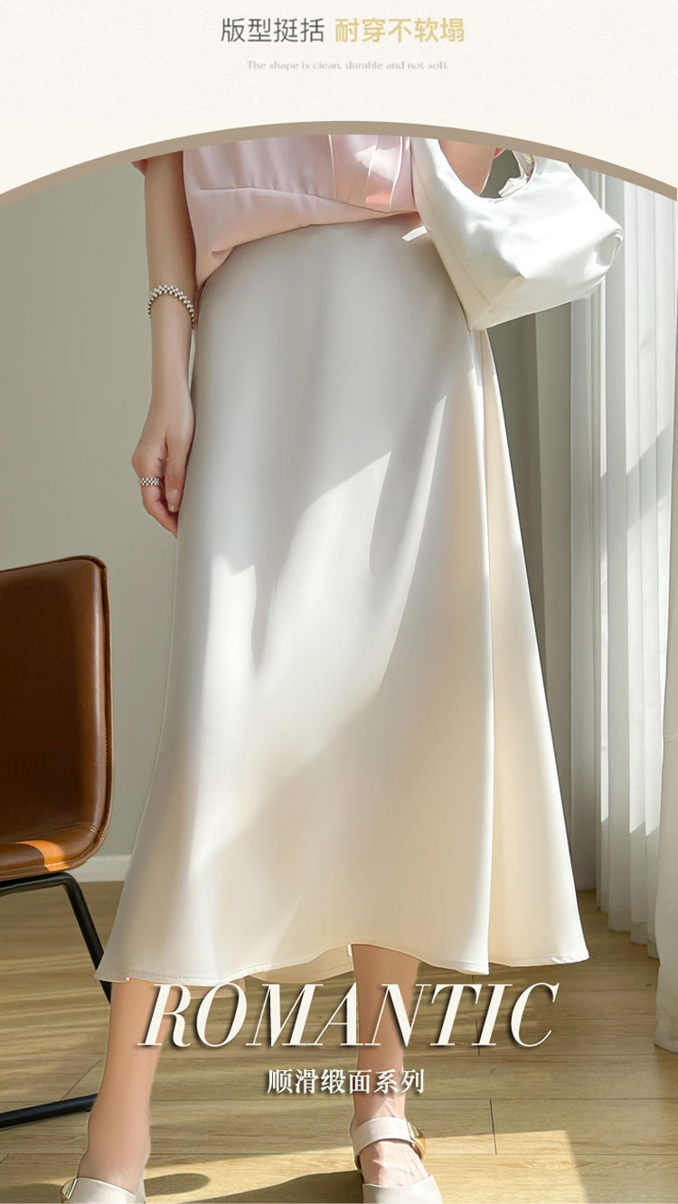 여름 새로운 여성의 단색 높은 허리 우아한 모든 경기 중간 길이 슬림핏 실크 스커트스토어 가기