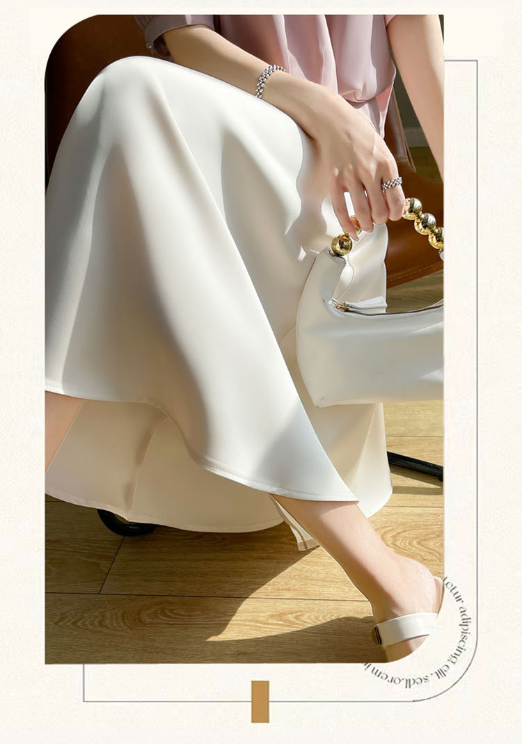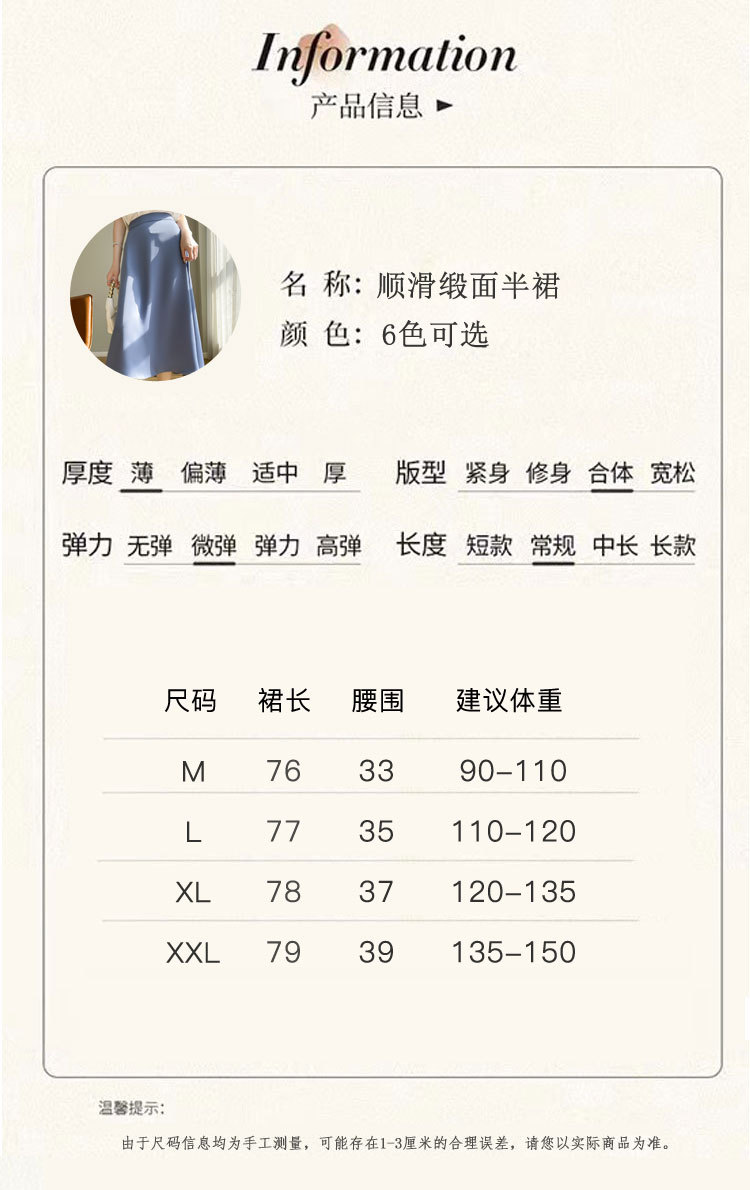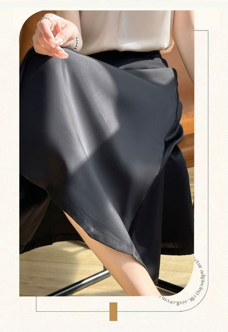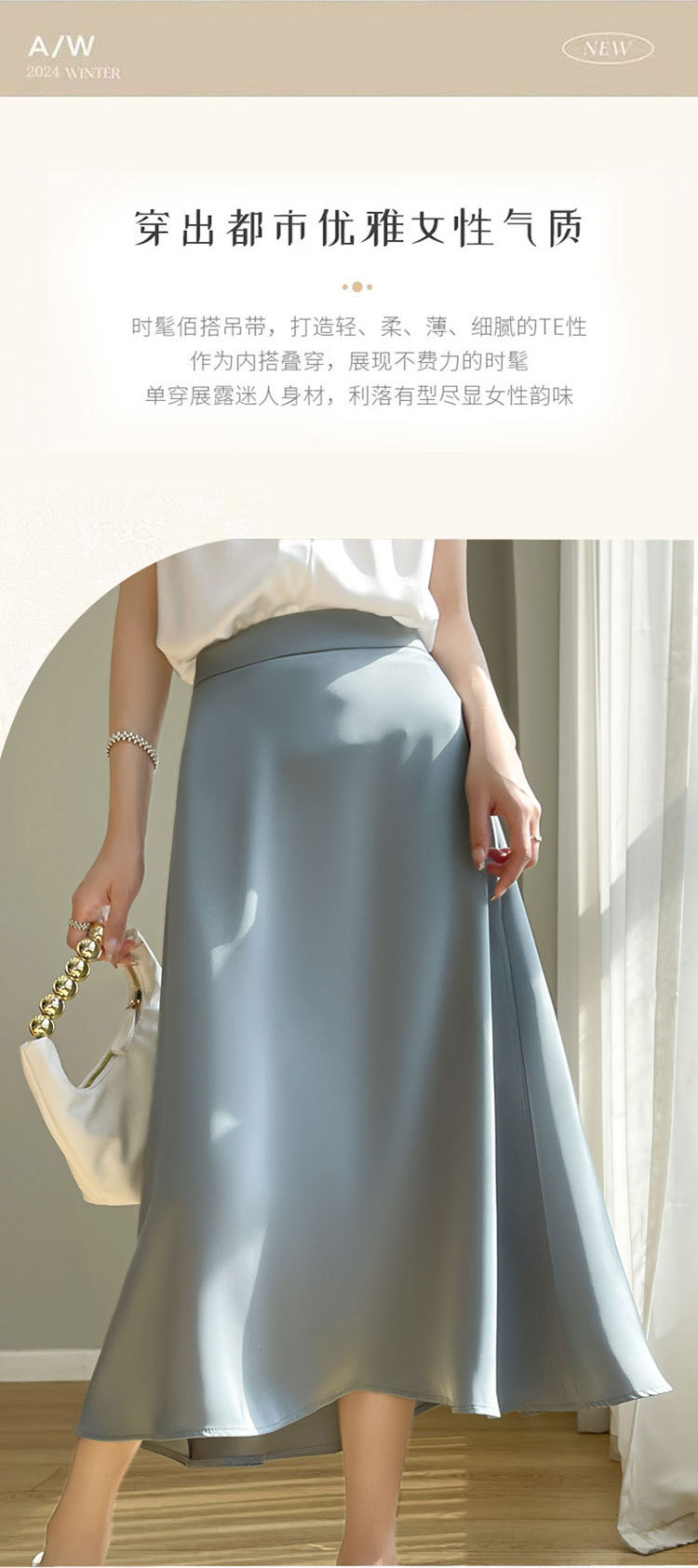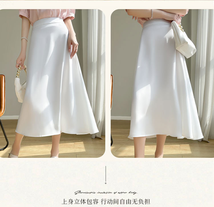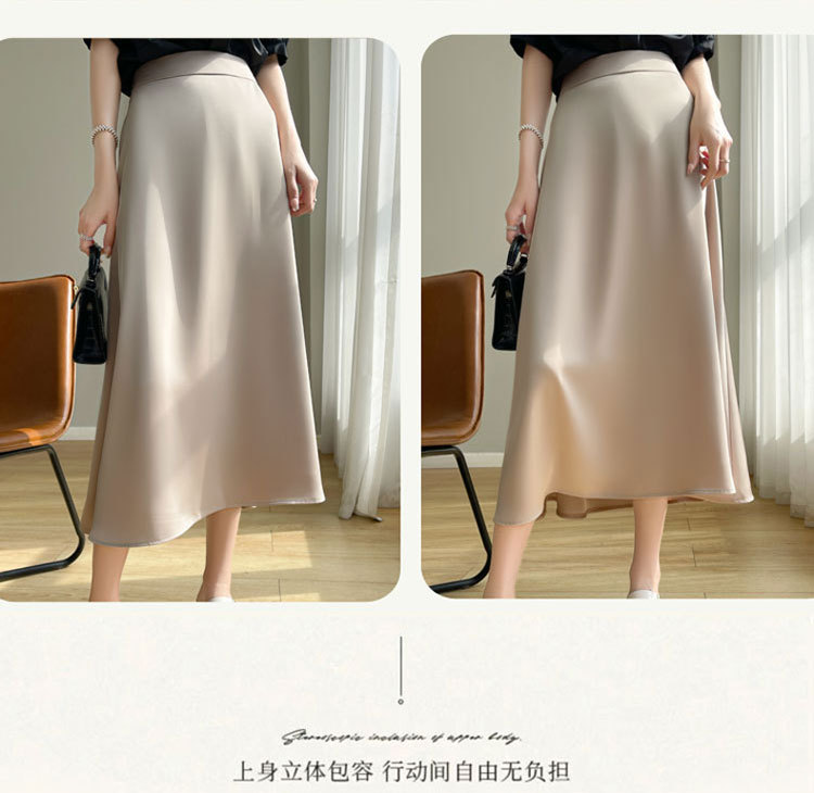 여름 새로운 여성의 단색 높은 허리 우아한 모든 경기 중간 길이 슬림핏 실크 스커트스토어 가기