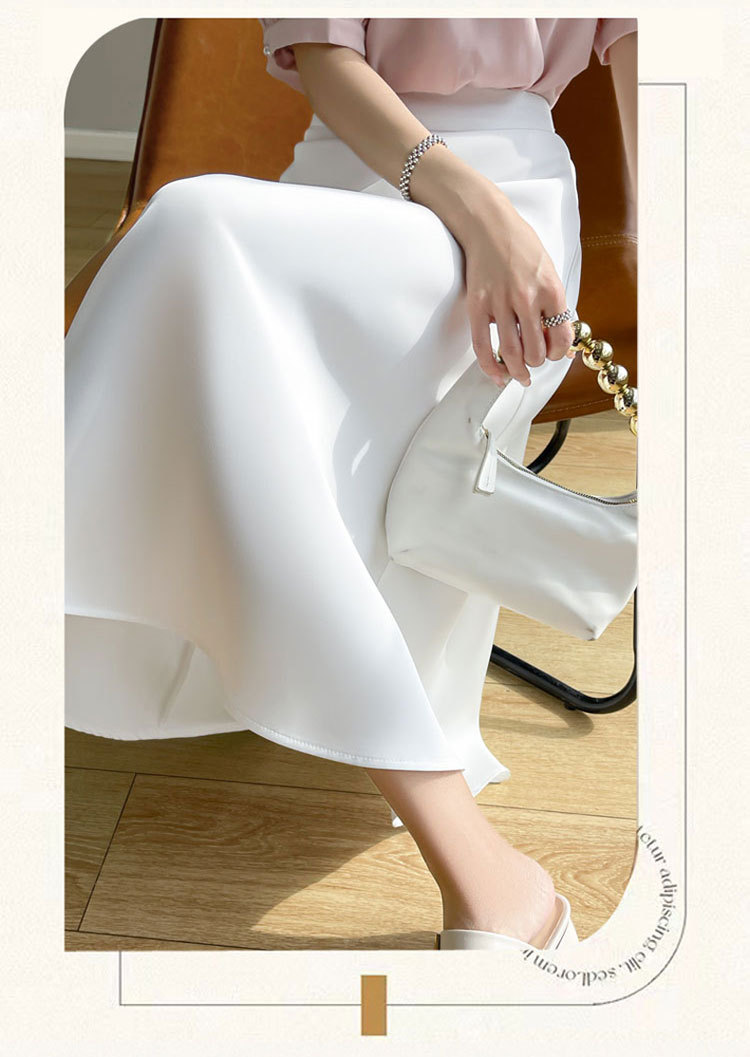 여름 새로운 여성의 단색 높은 허리 우아한 모든 경기 중간 길이 슬림핏 실크 스커트