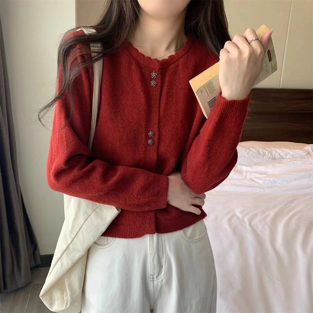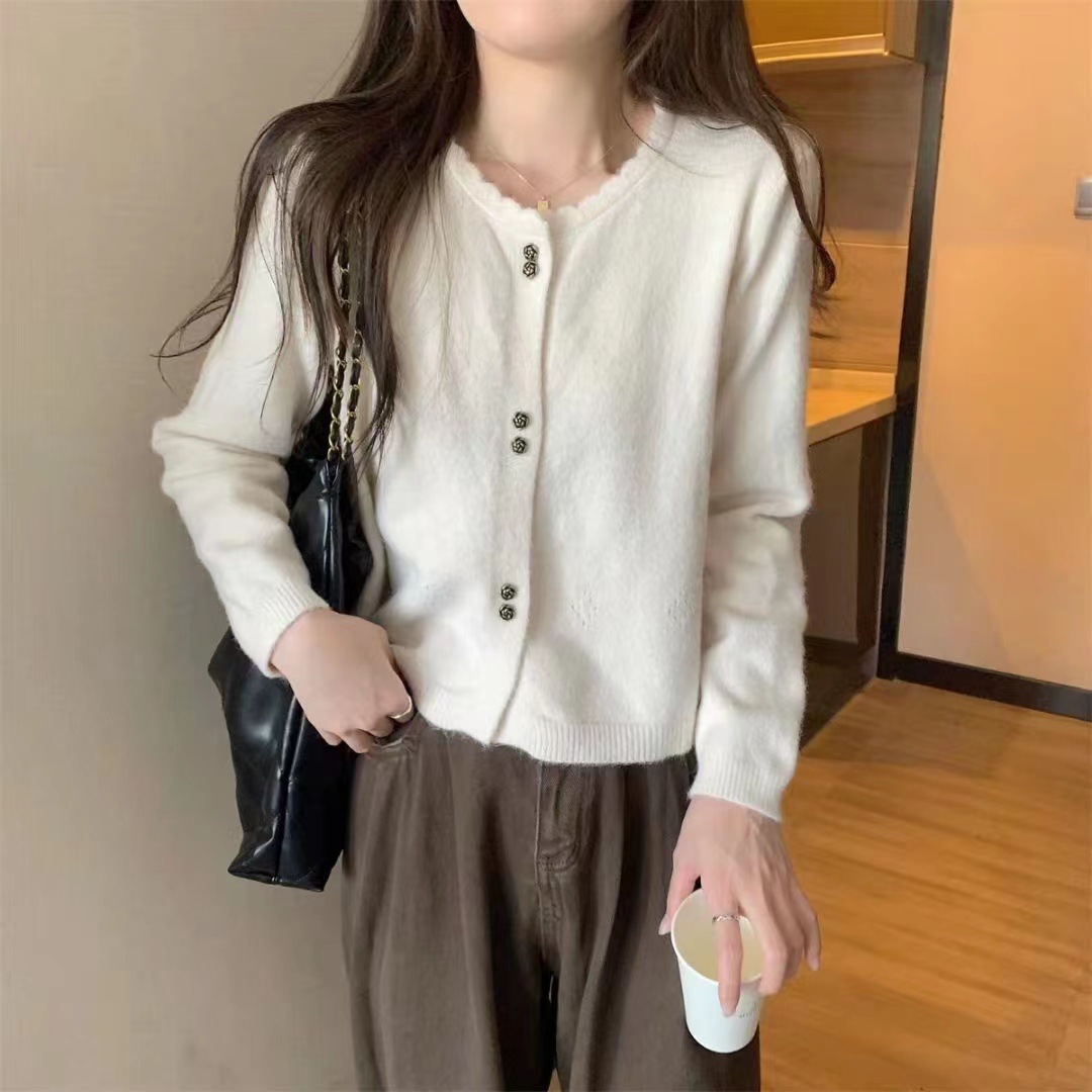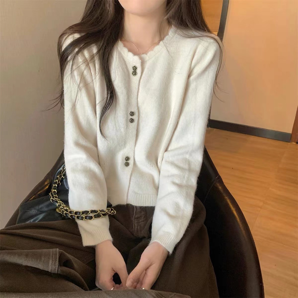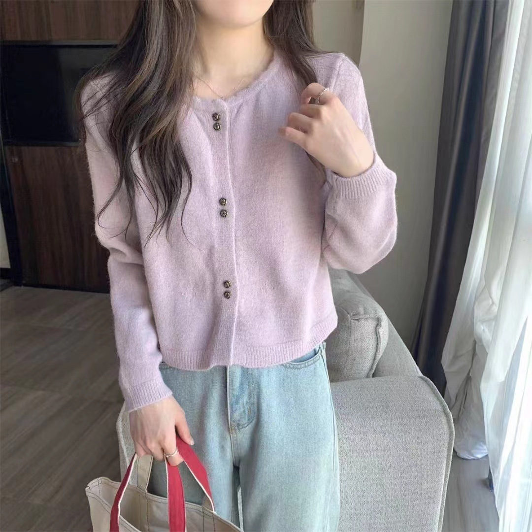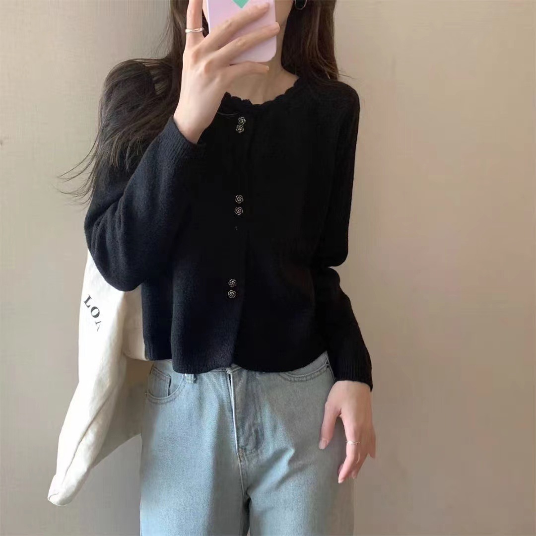 새로운 부드러운 장미 버튼 느슨한 캐주얼 우아한 긴 소매 니트 카디건 탑