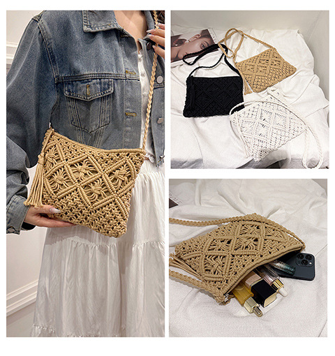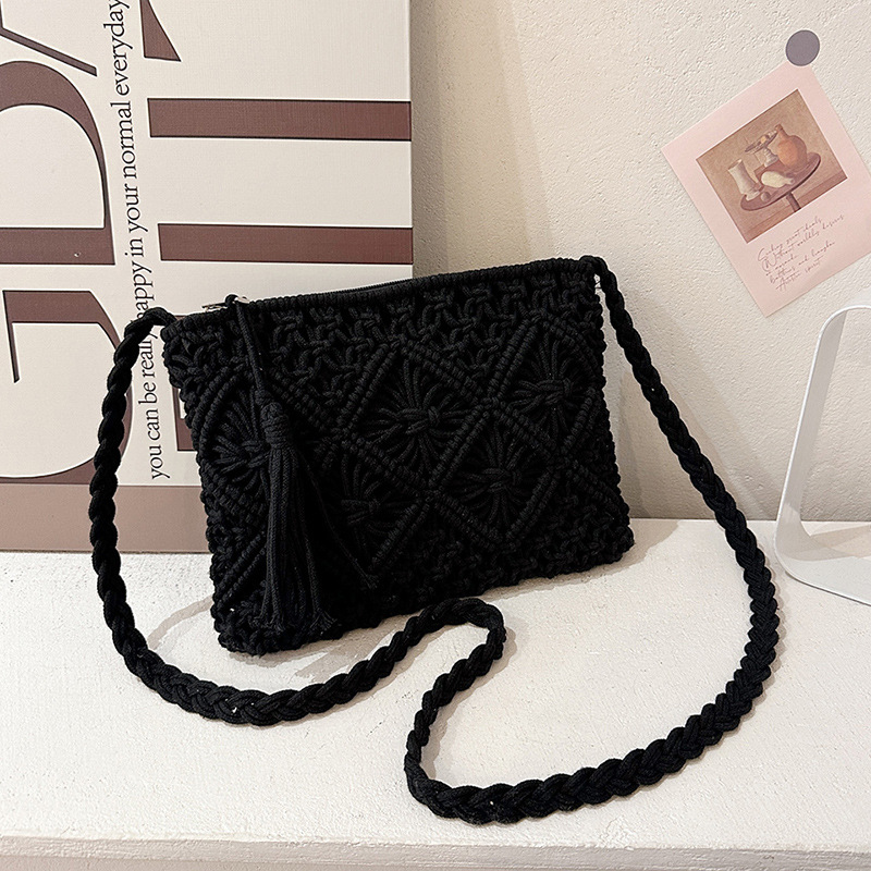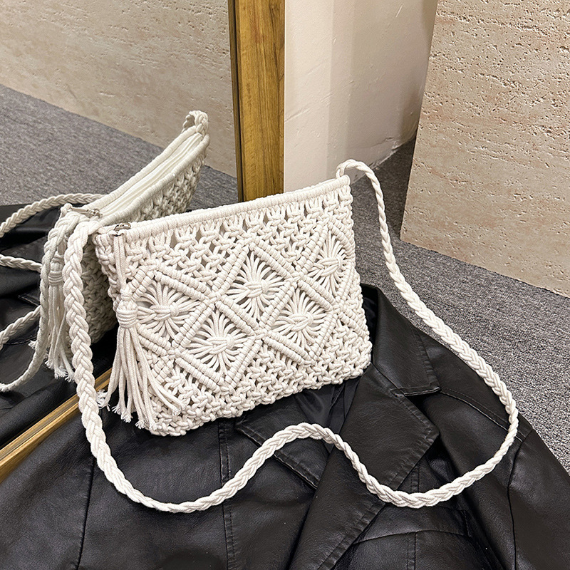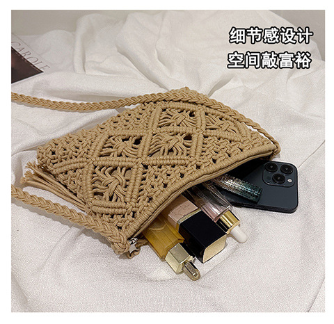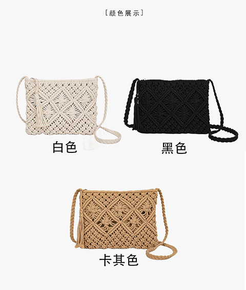 국경을 넘는 인기 상품, 면사 민족풍 수제 직조 가방, 속이 빈 태슬 장식의 상큼한 크로스백스토어 가기