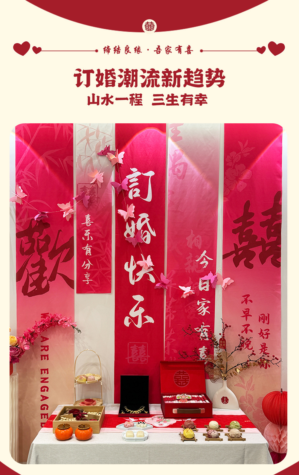 웨딩 연회 레이아웃 배너 매달려 천 배경 벽 전체 세트 장식 패키지 세트 테이블 약혼 장식품 웨딩 용품스토어 가기