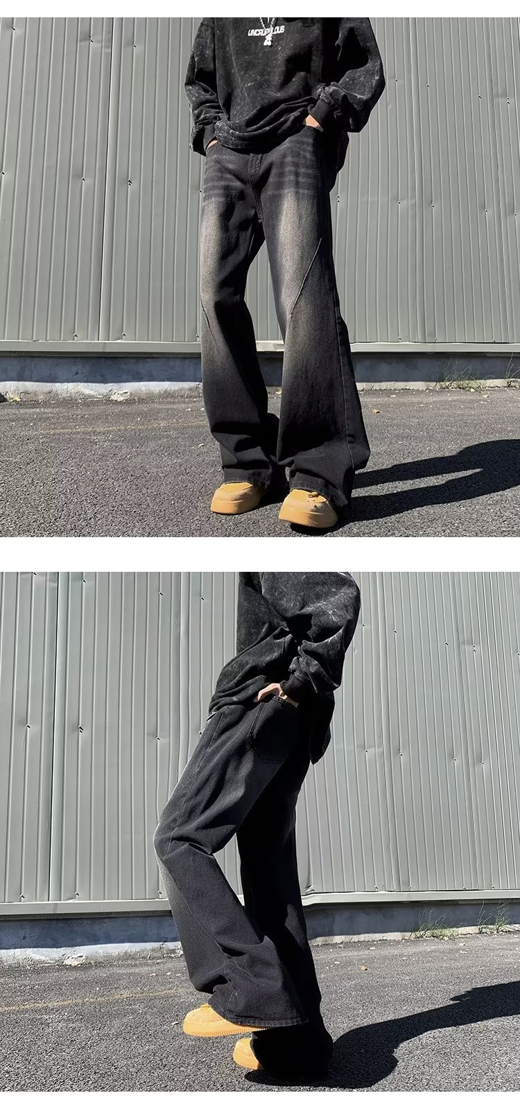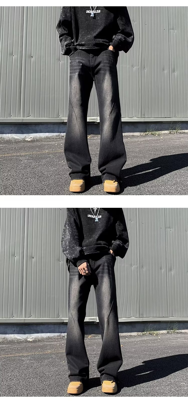 하이 스트리트 바이브 스타일 지퍼 청바지 남성 2024 년 여름 새로운 미국 스타일 레트로 루즈 스트레이트 캐주얼 바지