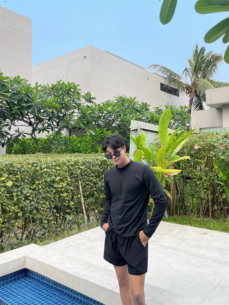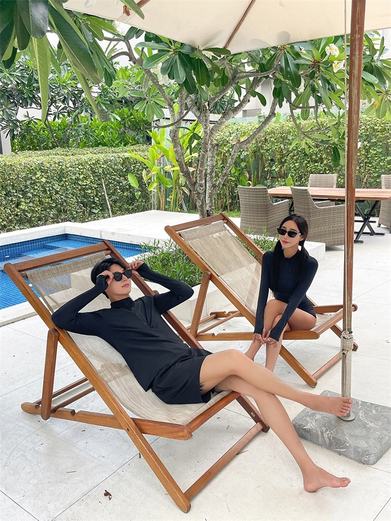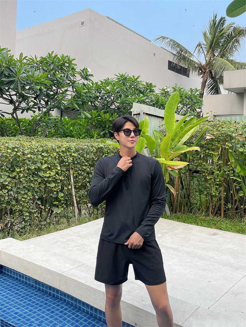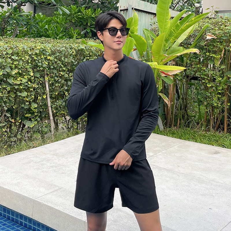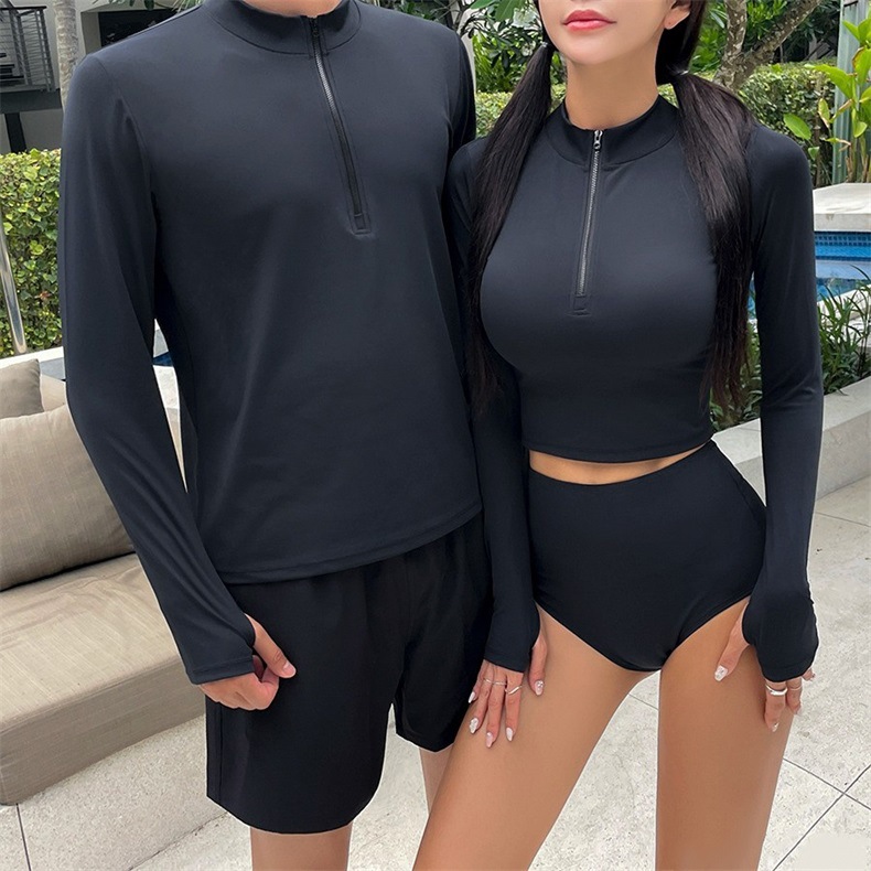 한국 국경 간 세트 남녀 커플 솔리드 컬러 지퍼 긴소매 타이트한 해파리 세트 휴일 수영복스토어 가기