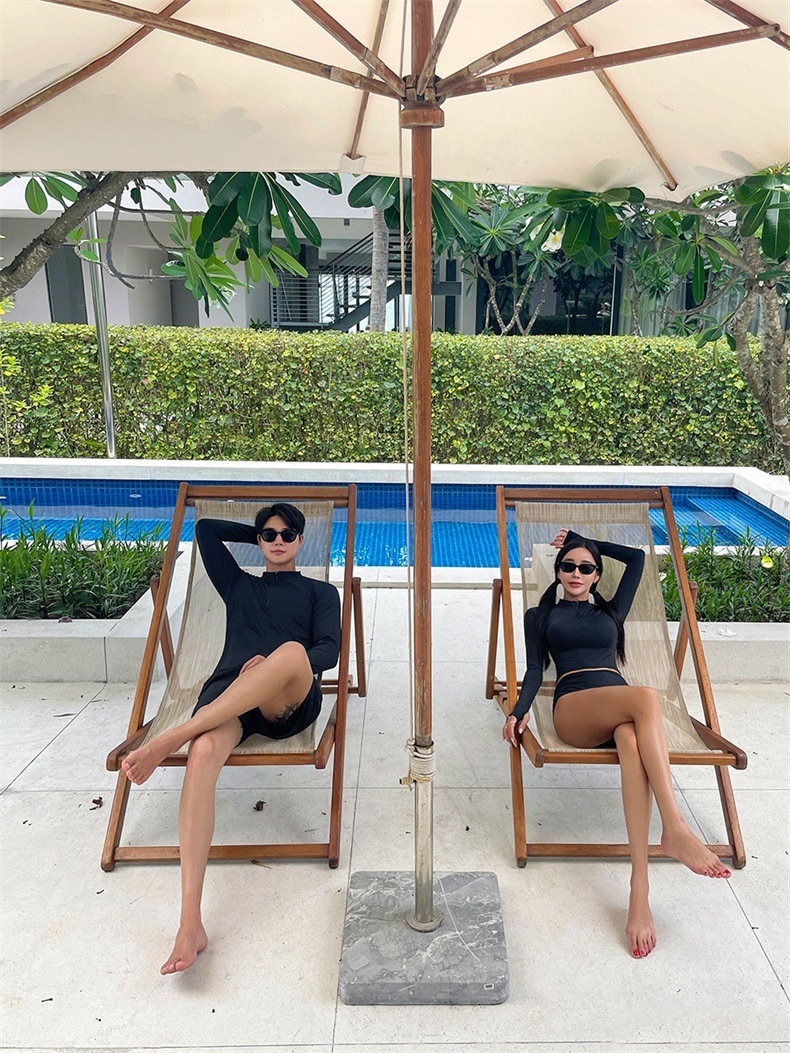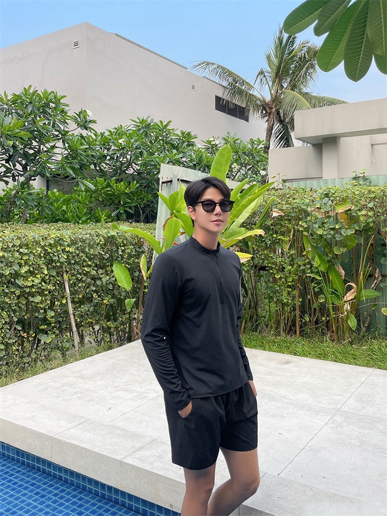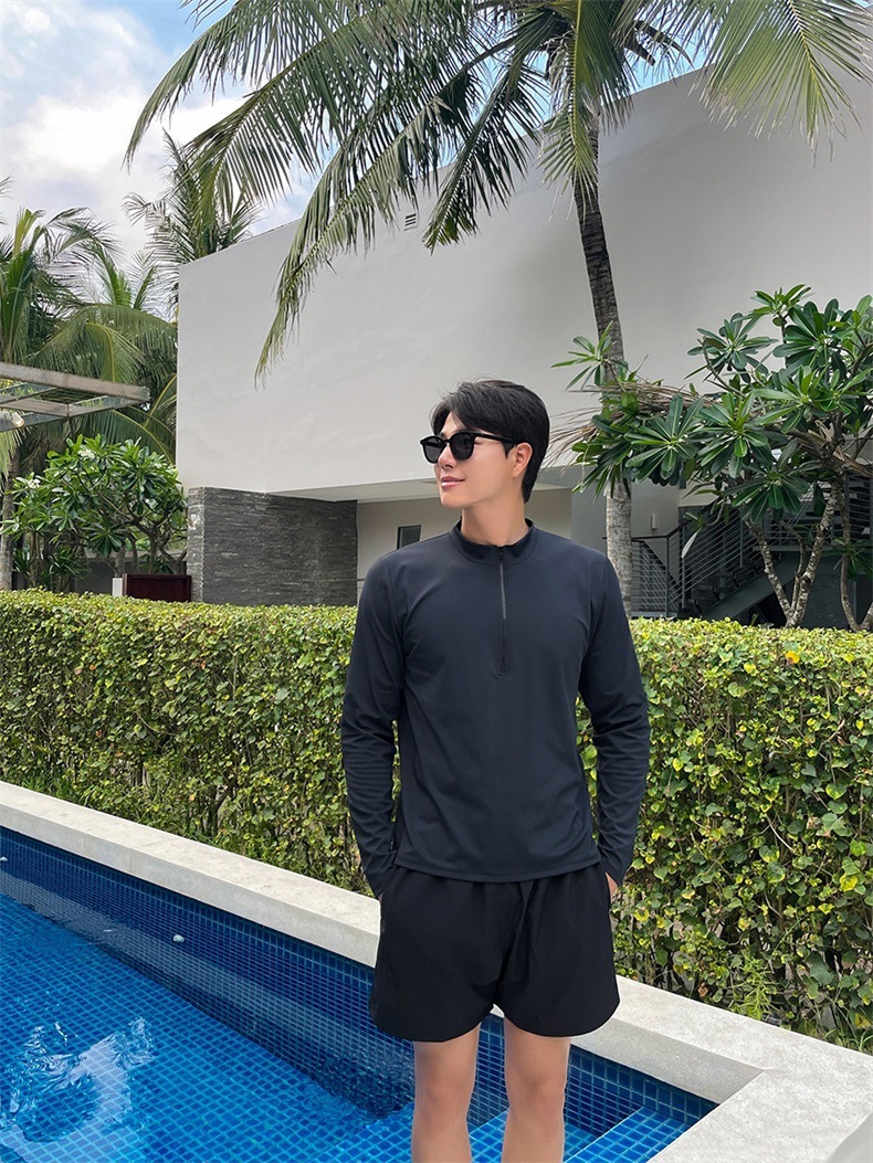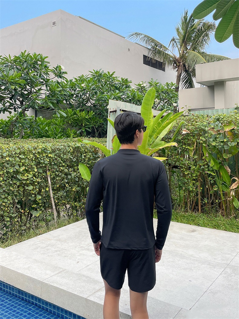 한국 국경 간 세트 남녀 커플 솔리드 컬러 지퍼 긴소매 타이트한 해파리 세트 휴일 수영복스토어 가기