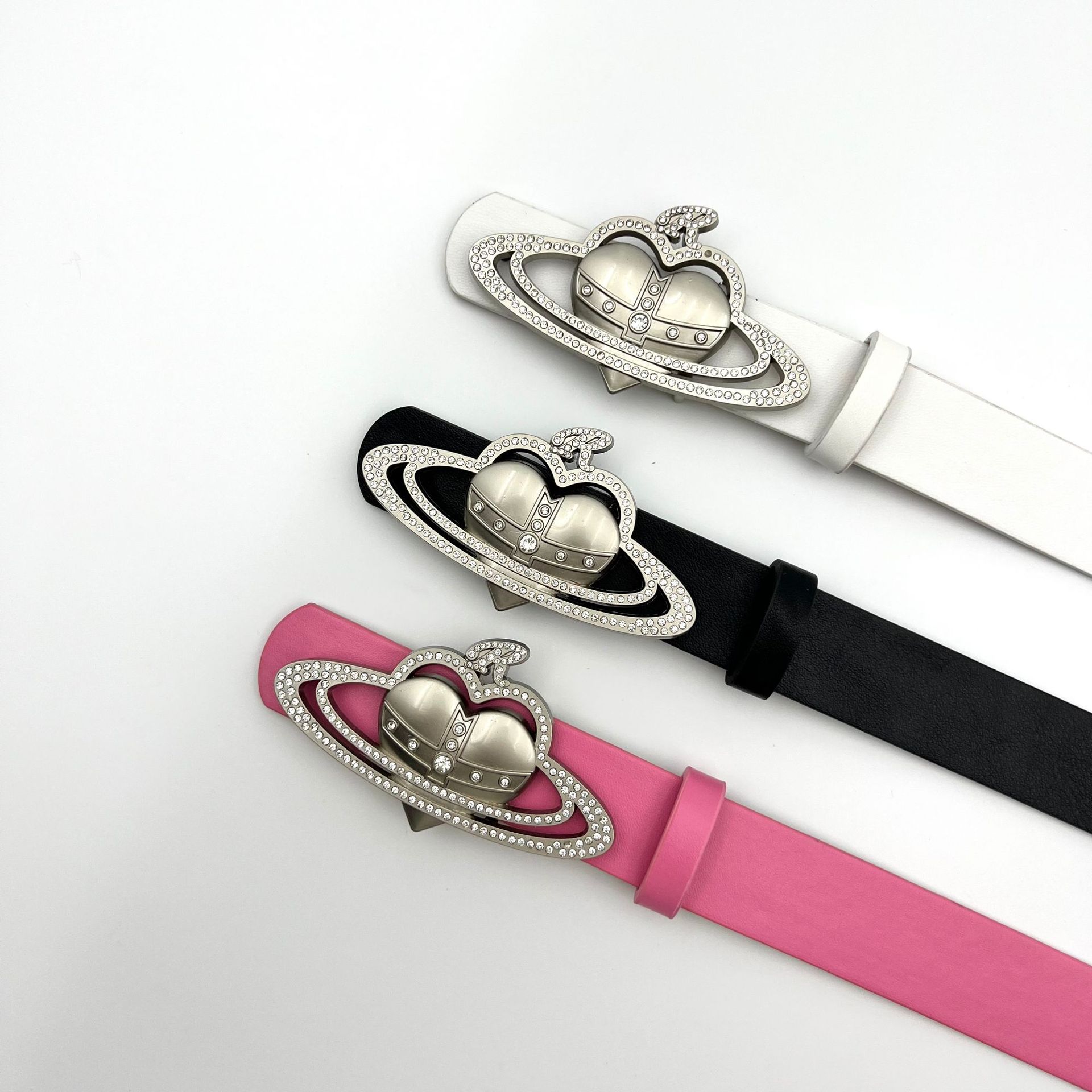 사랑 토성 크로스 크라운 R 편지 라인 스톤 상감 금속 스냅 버튼 PU 장식 벨트 패션 디자인 감각