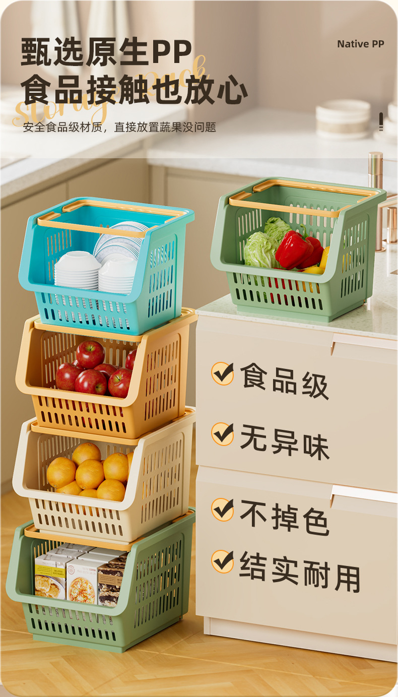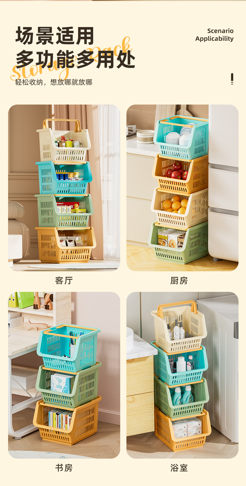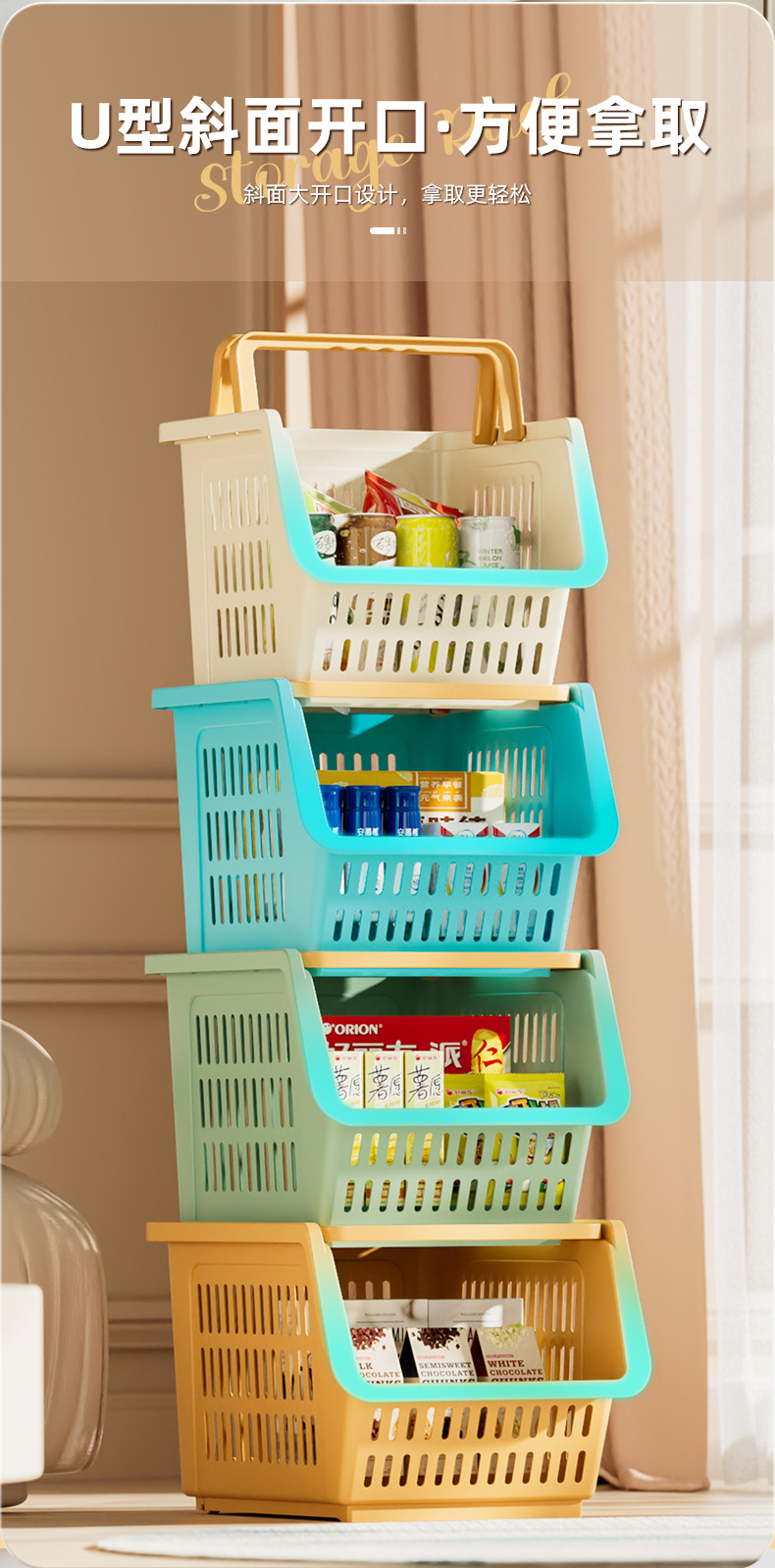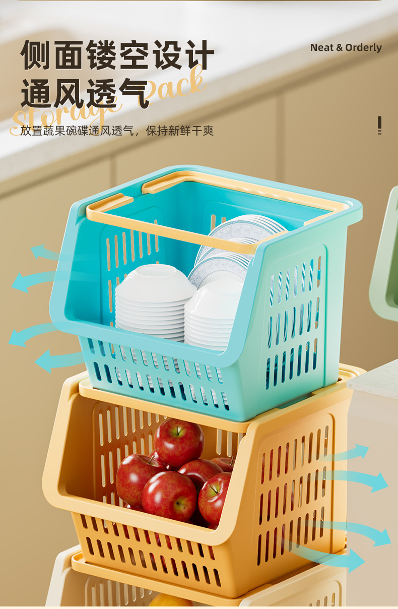 플라스틱 야채 바구니 야채와 과일 저장 바구니 다층 쌓을 수있는 스낵 장난감 저장 랙 주방 보관 랙