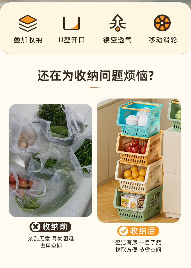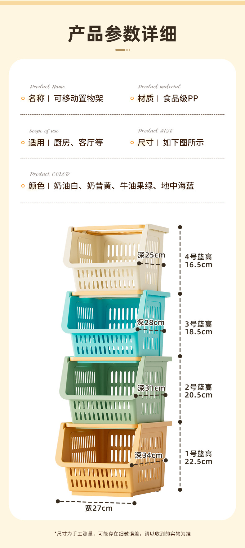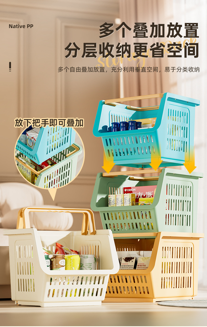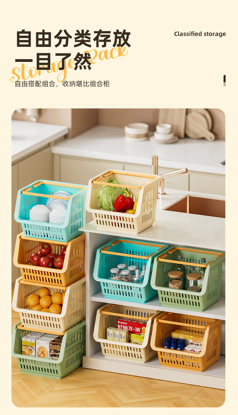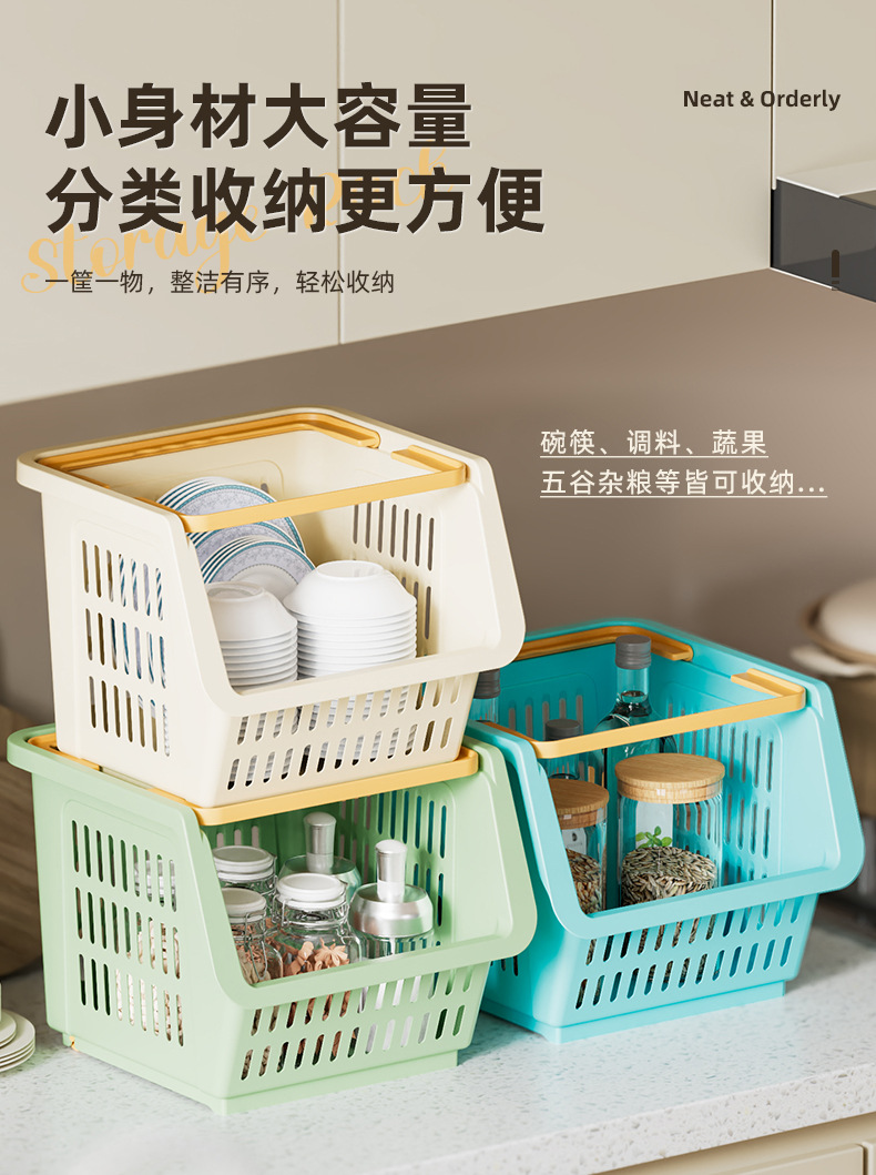 플라스틱 야채 바구니 야채와 과일 저장 바구니 다층 쌓을 수있는 스낵 장난감 저장 랙 주방 보관 랙