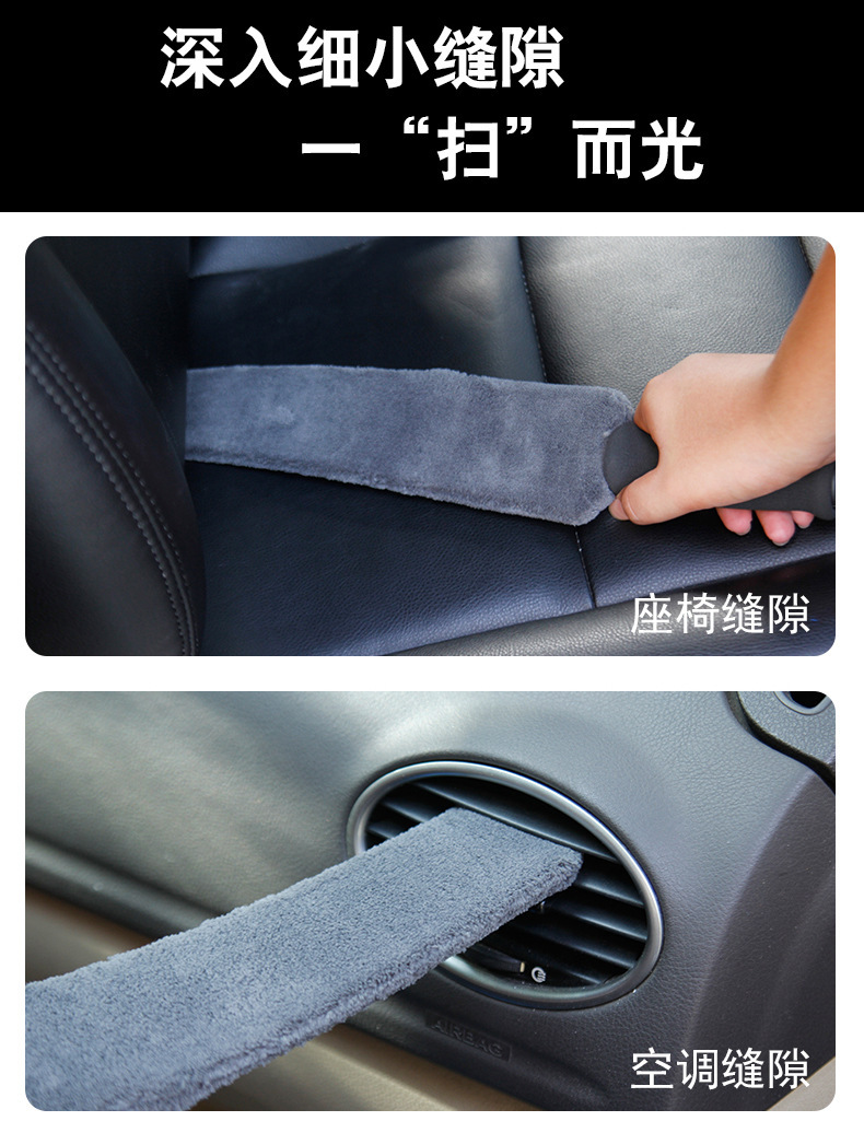 1、可擦拭汽车空调扇叶,车门储物格、中控台杯座、仪表台能容易吸灰的角落。