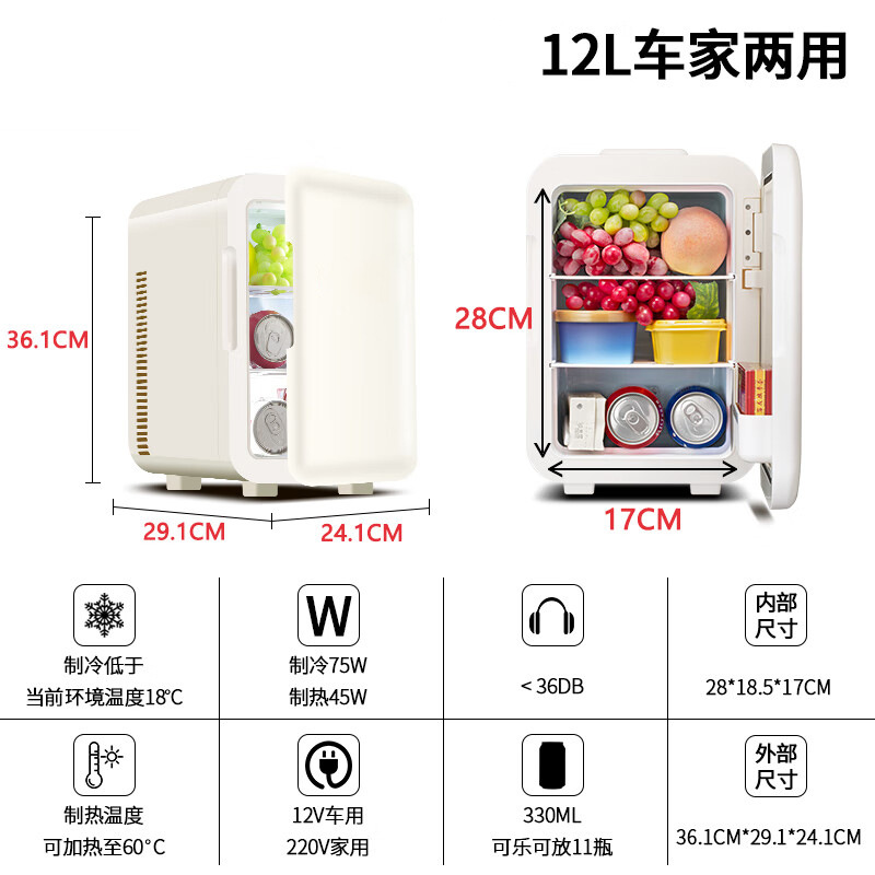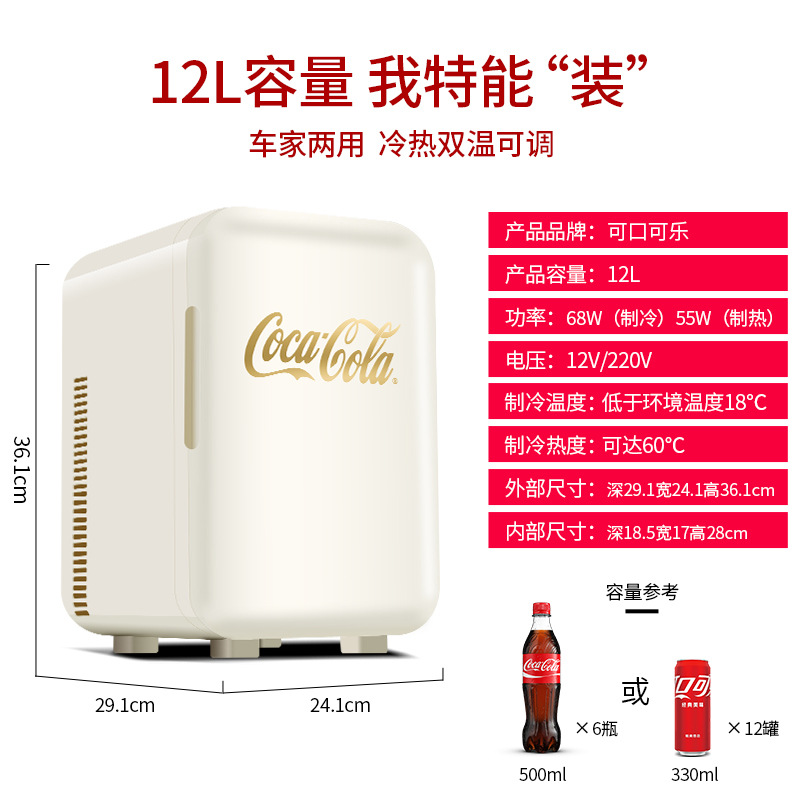 코카콜라 국경 12L 냉장 자동차 냉장고 미니 소형 기숙사 자동차 홈 이중 사용 전자 냉각 및 난방 상자