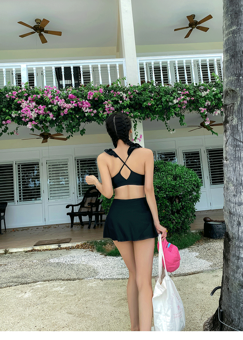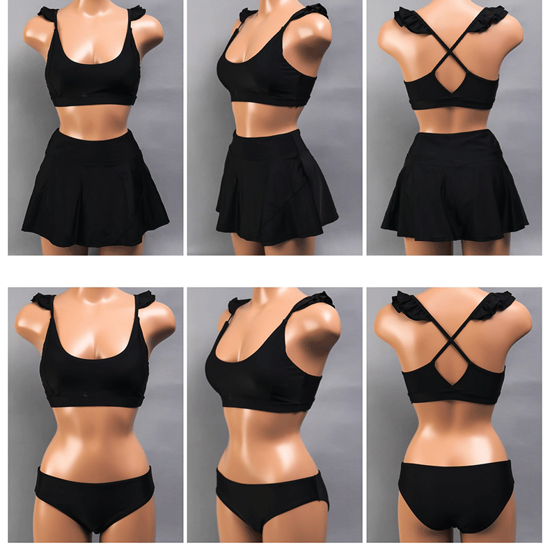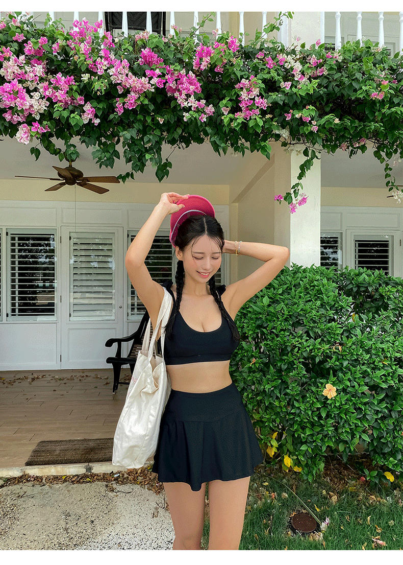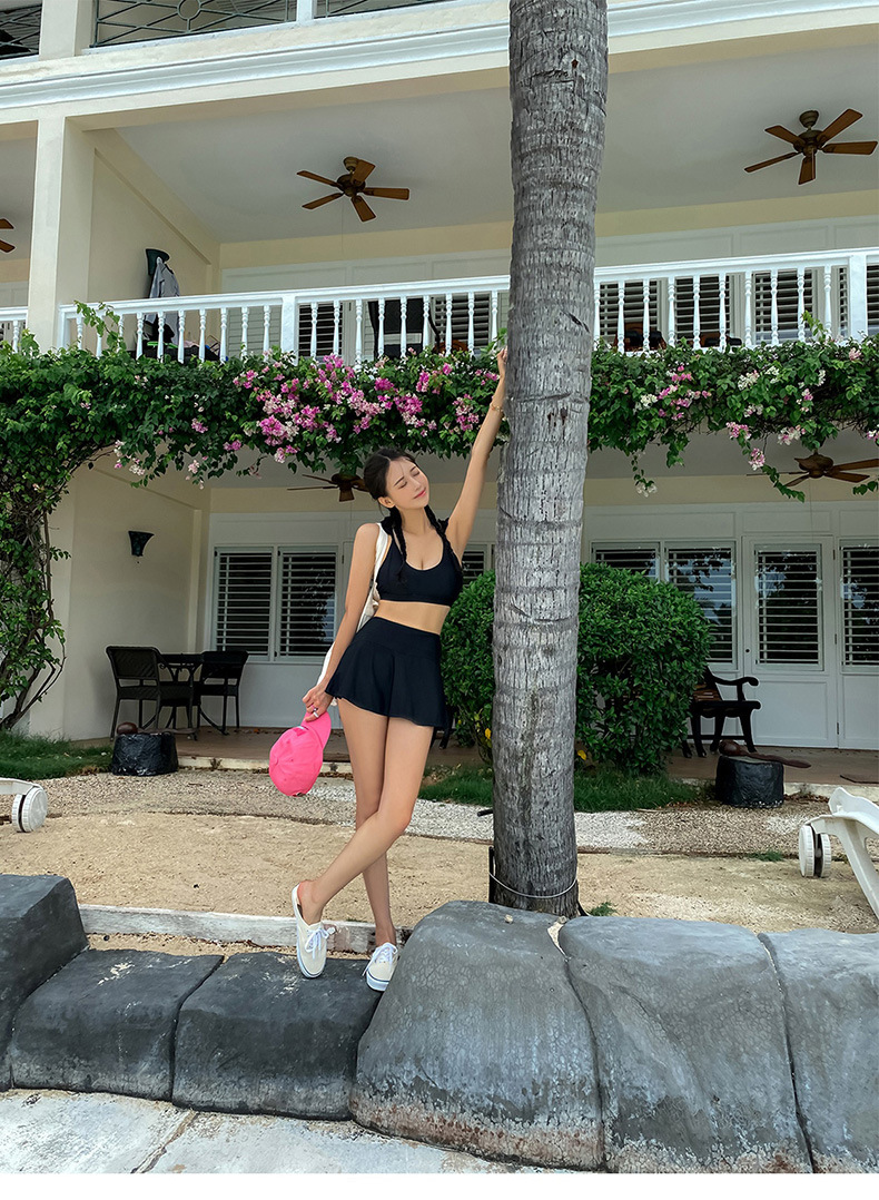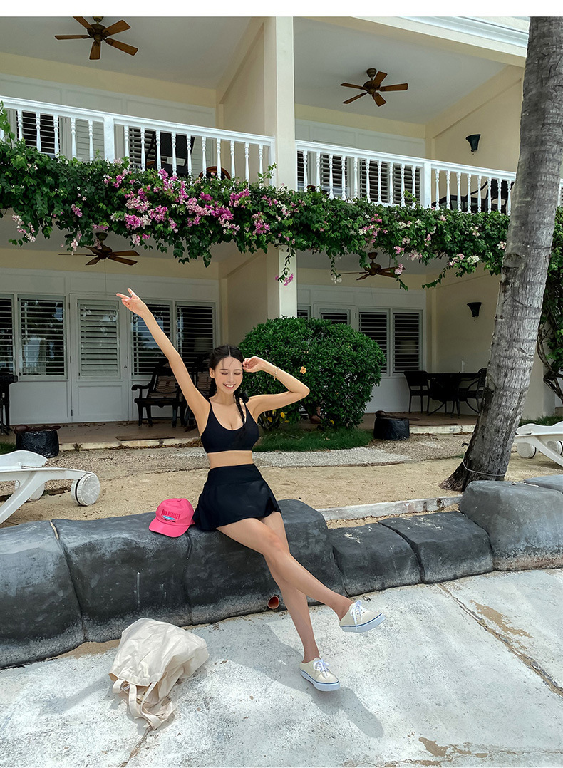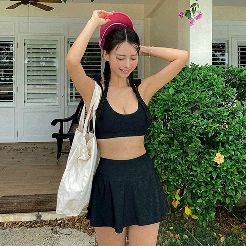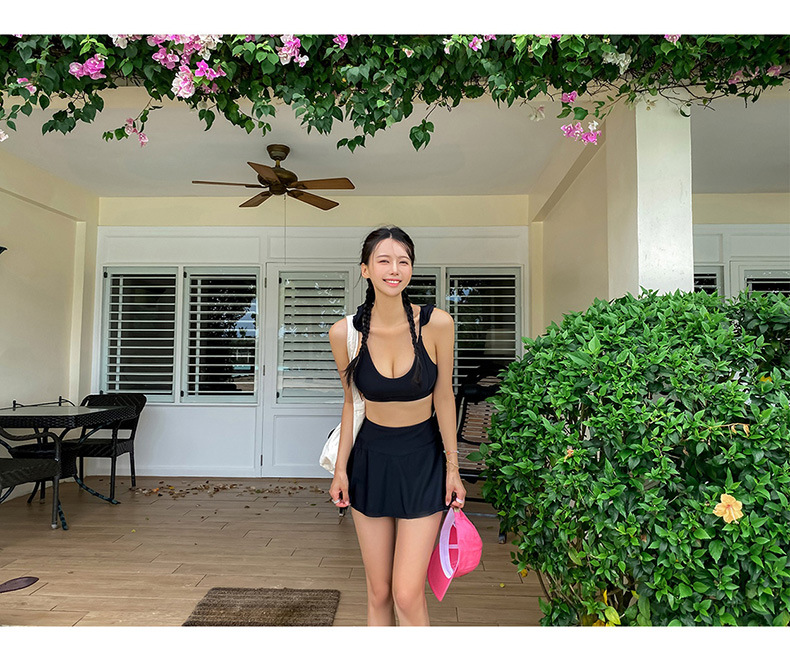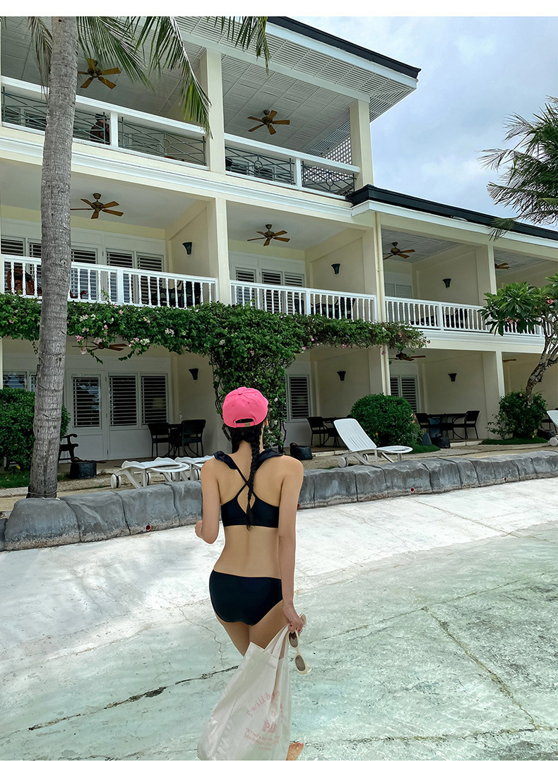 새로운 캔디 컬러 소녀 간단한 분할 3 피스 수영복 여성 비치 휴가 높은 허리 작은 가슴 비키니 수영복