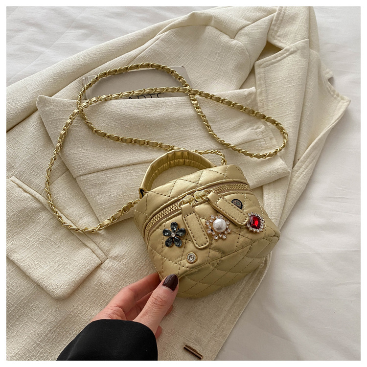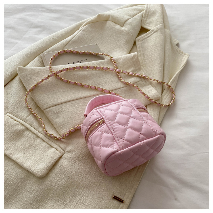 2024 새로운 어린이 가방 여성 라인 수리 마름모꼴 Pu 손을 들고 상자 가방 소녀 쇼 거리 촬영 미니 체인 가방