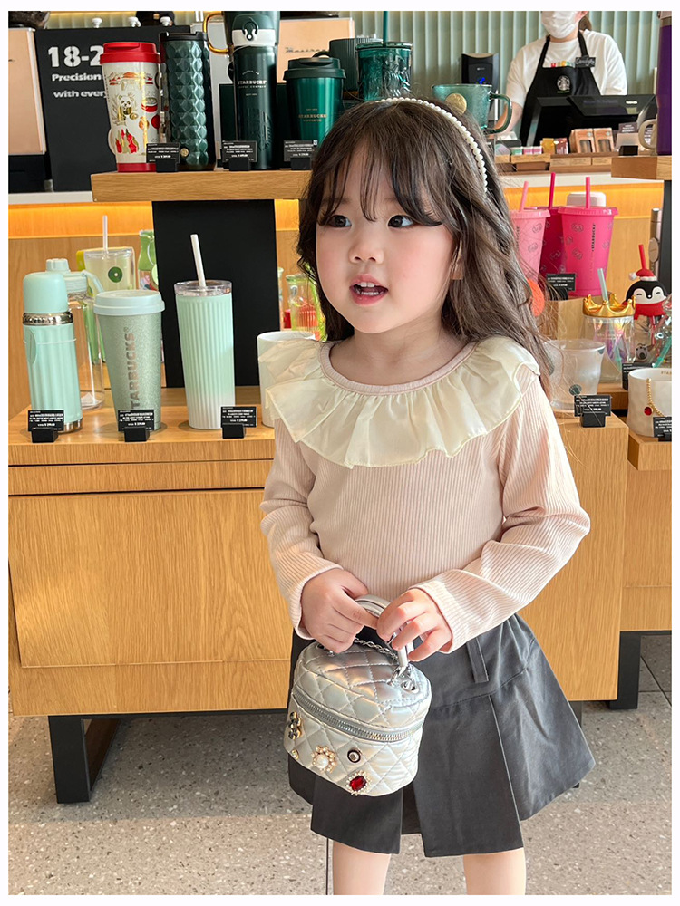 2024 새로운 어린이 가방 여성 라인 수리 마름모꼴 Pu 손을 들고 상자 가방 소녀 쇼 거리 촬영 미니 체인 가방스토어 가기