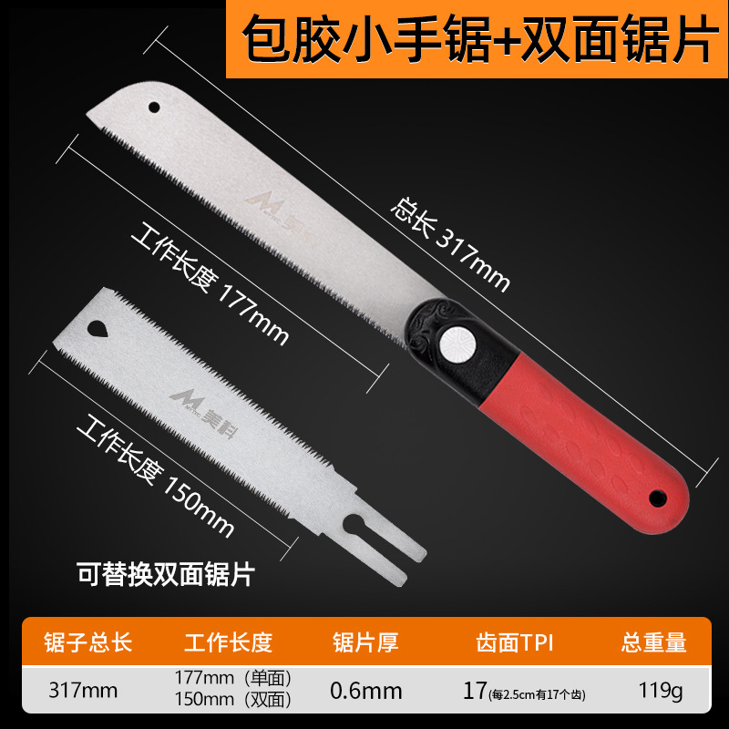 • (미세 치아 조밀 치아) 고무 코팅 작은 손으로 여분의 양면 톱날을 보았다