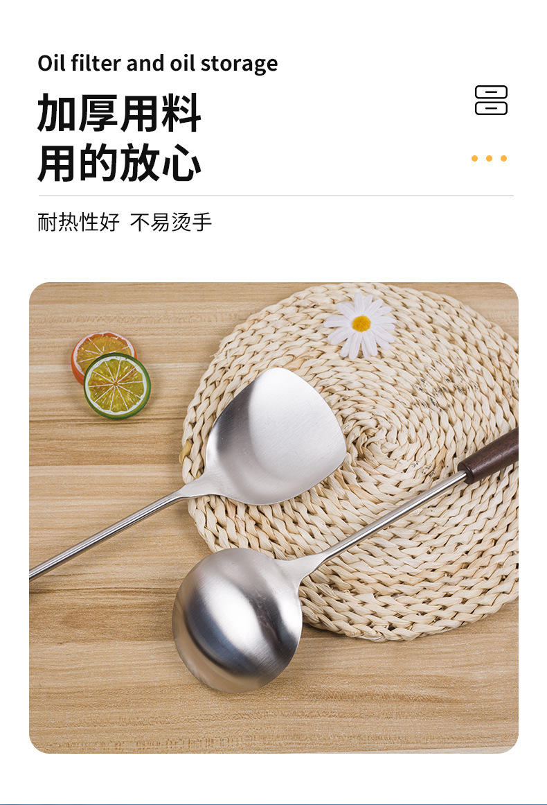 가정용 주방 요리 두꺼운 식품 학년 스테인레스 스틸 주걱 빈티지 나무 손잡이 안티 스케일링 주방용품 세트스토어 가기