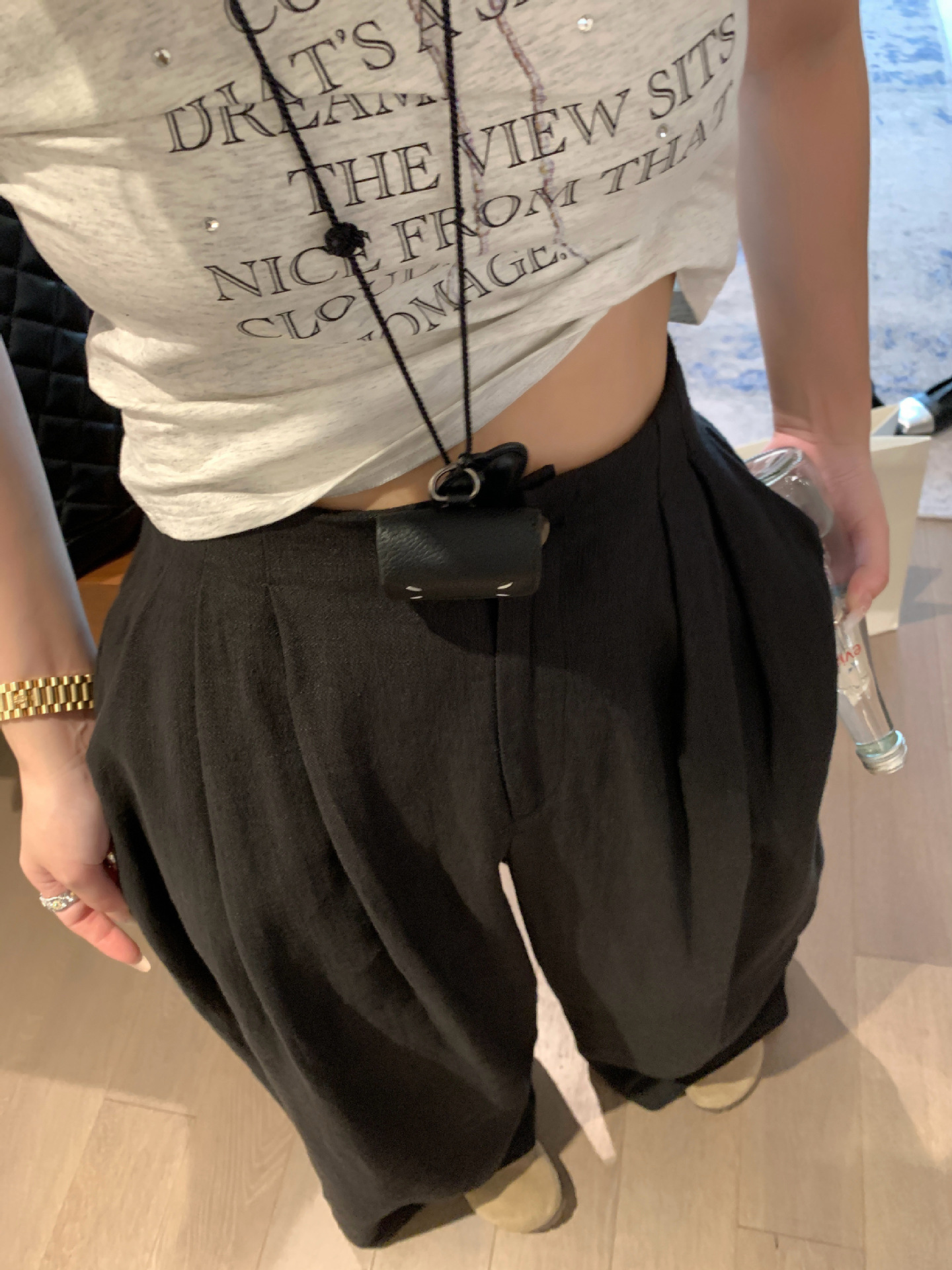 杀疯了!也是私服改版的裤型,裤型上wan全没问题。这条阔腿裤真的ju舒服!面料对了很久 打了三四版,最后敲定的面料和裤型真的可以说是wan美!就是面料贵点没别的毛病…棉麻面料透气凉爽 舒适度高,赋予阔腿裤轻盈舒适的形态 上身就狠有说服力,裤型te别好,用量很足!肌肉腿 萝卜腿 都不在话下 狠狠拿捏,面料透气 夏天用来防晒也不错,麻料的特性穿久之后出现的褶皱感越穿越有味道,不可错过的时髦神裤 闭眼冲!!!