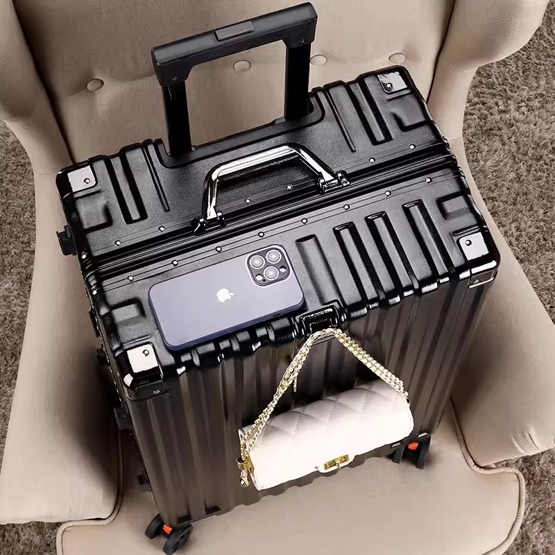 수하물 여성 음소거 유니버설 휠 수하물 케이스 알루미늄 프레임 24 인치 학생 비밀번호 가방 남성용 라이브 방송