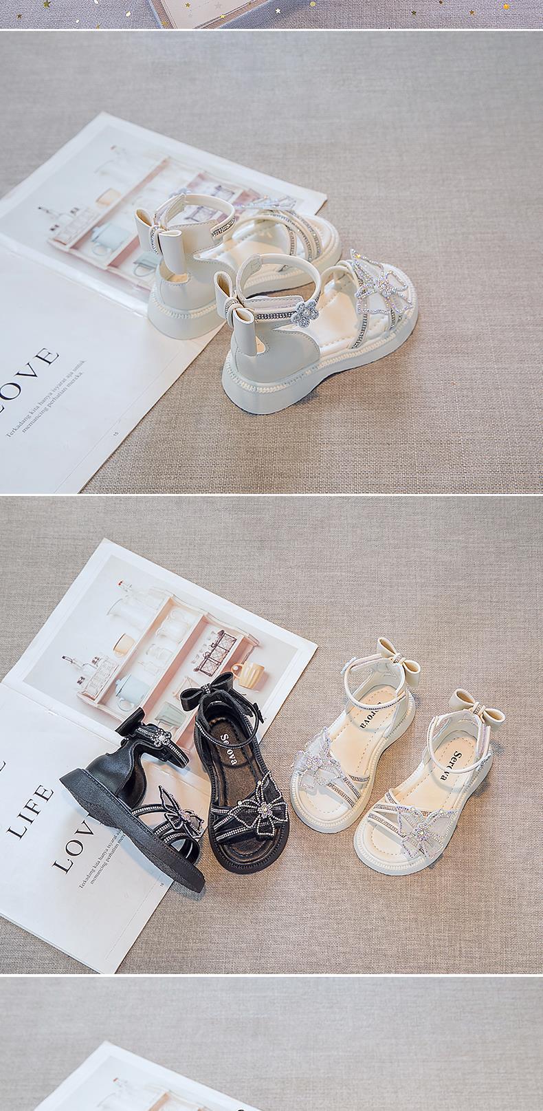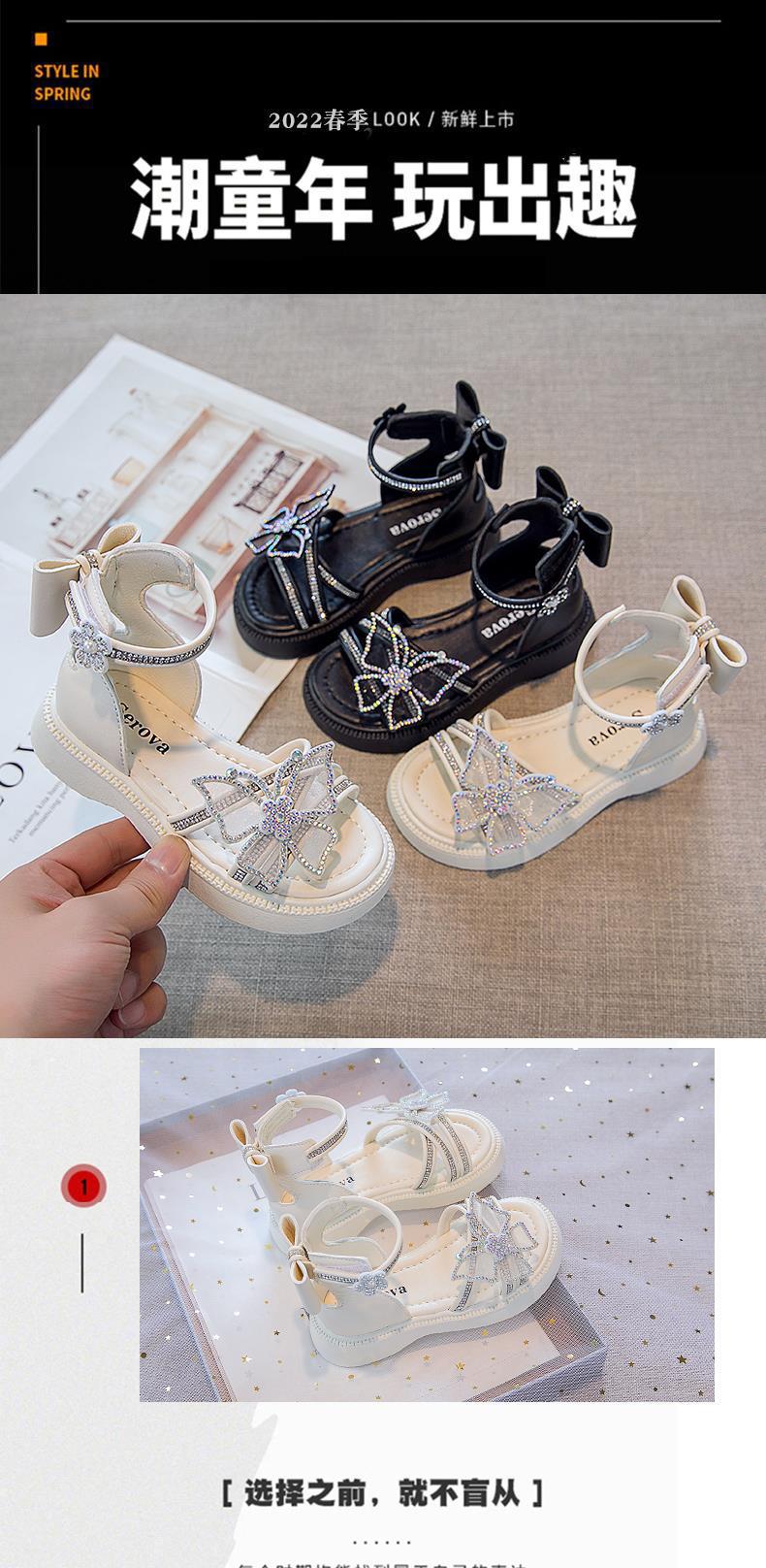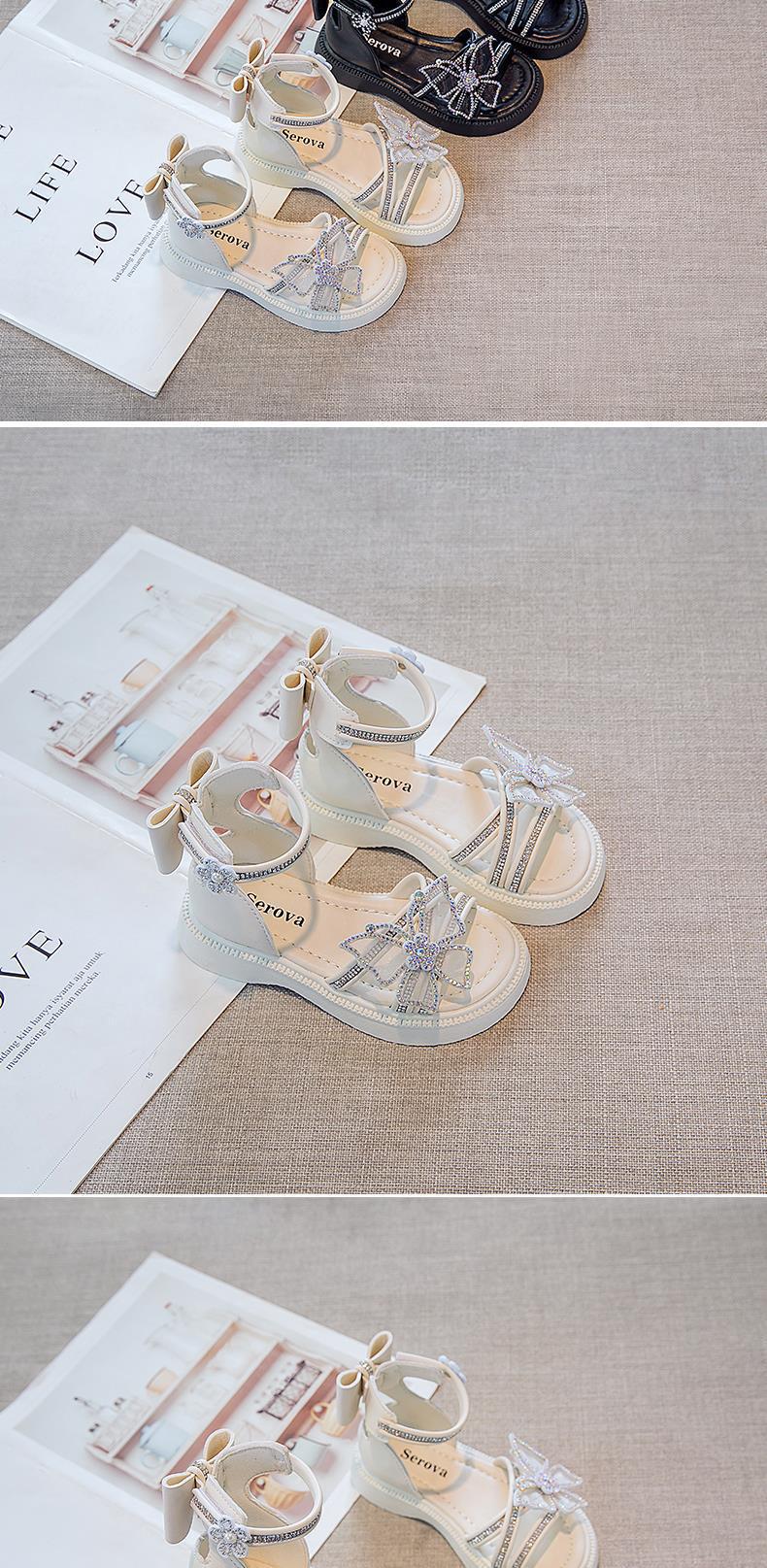 소녀 샌들 2024 여름 새로운 어린이 공주 신발 아기 미끄럼 방지 소녀 크리스탈 신발 여름 비치 샌들스토어 가기
