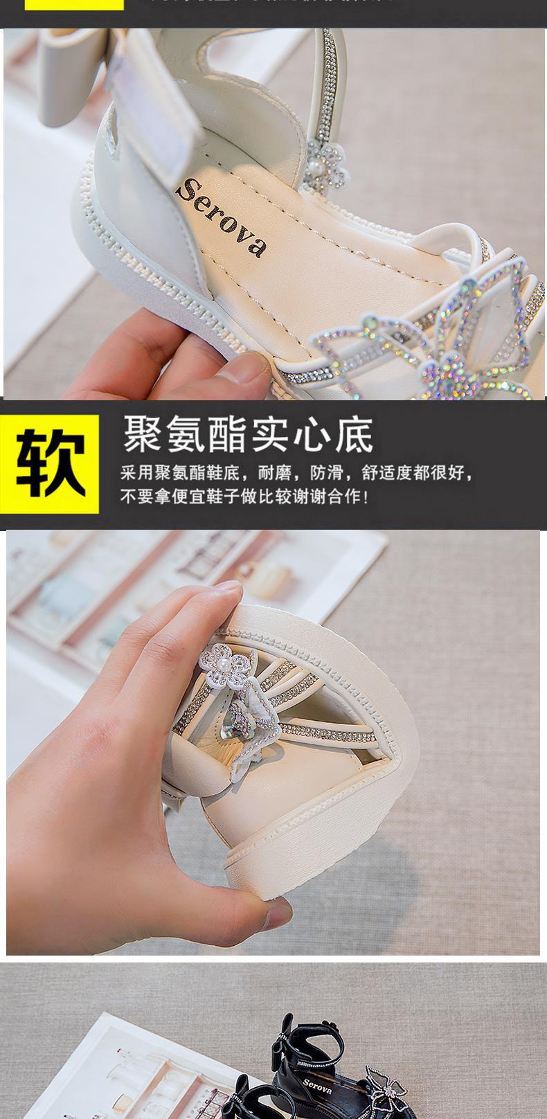 소녀 샌들 2024 여름 새로운 어린이 공주 신발 아기 미끄럼 방지 소녀 크리스탈 신발 여름 비치 샌들