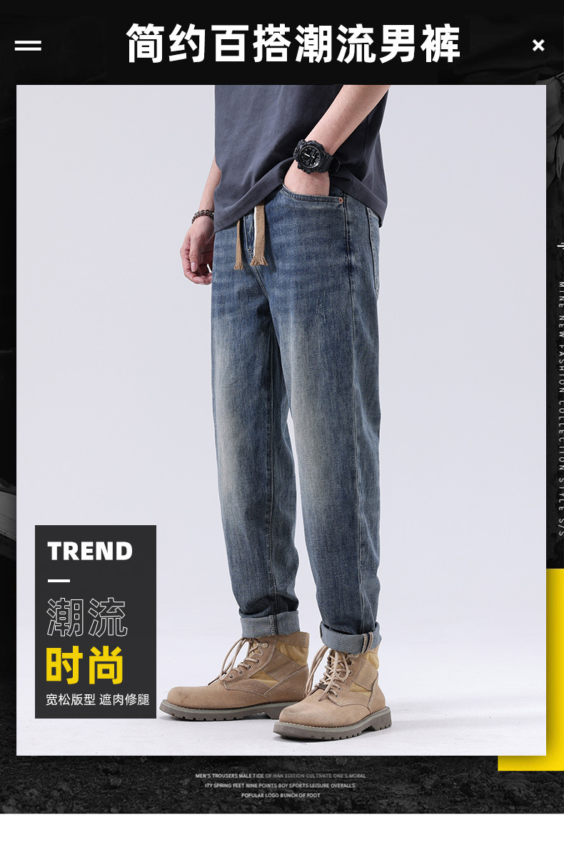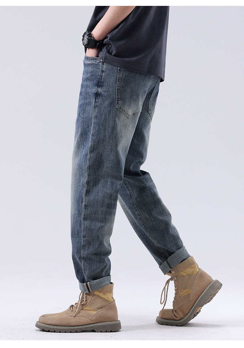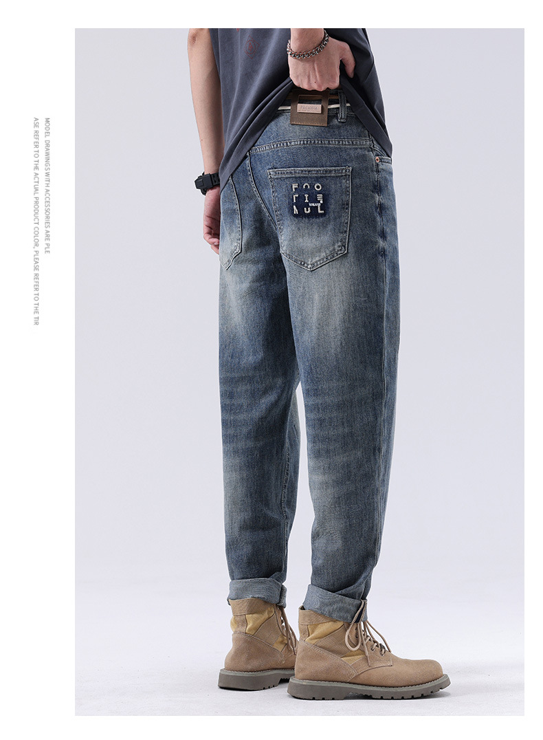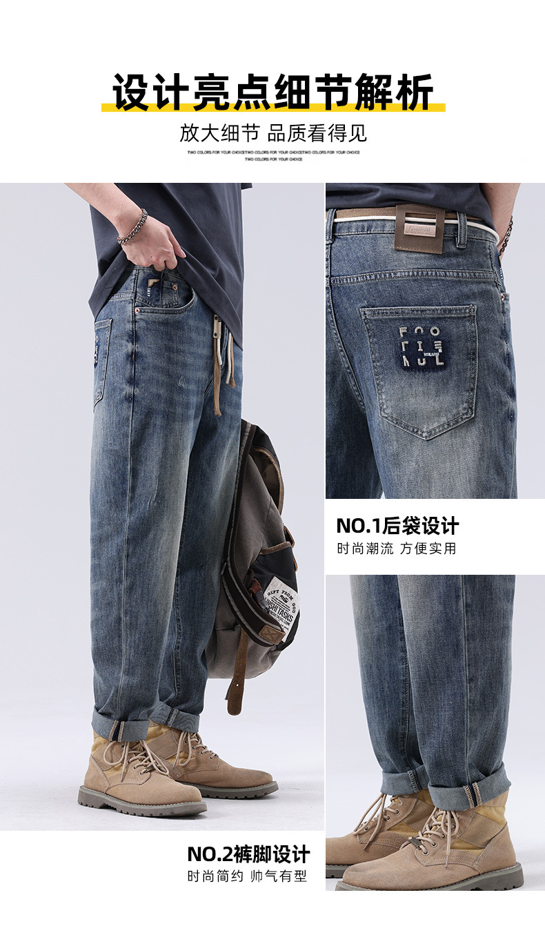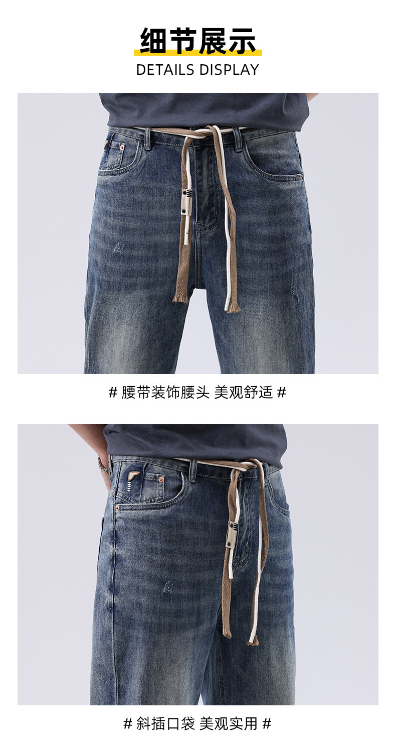 91102 | 대형 남성 여름 새로운 중공업 세척 청바지 느슨한 향수 레트로 스트레치 얇은 바지스토어 가기