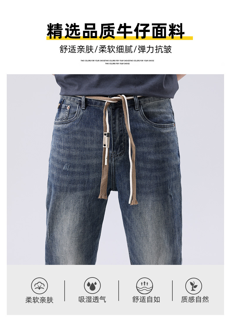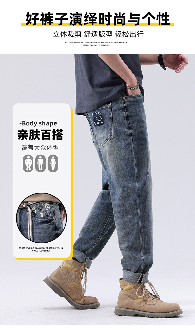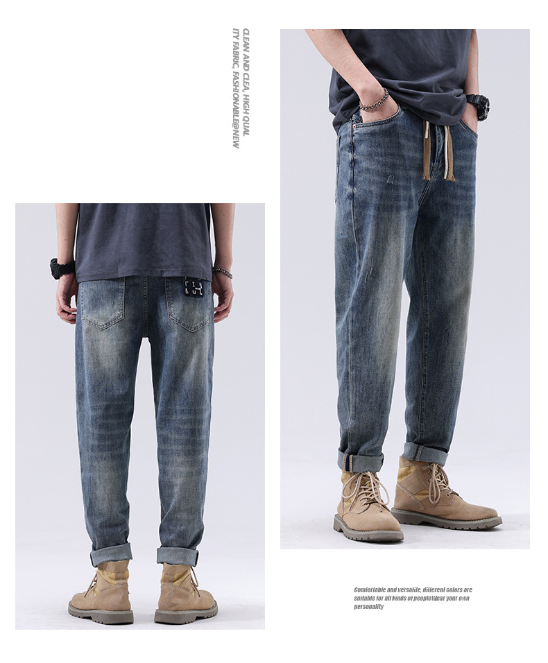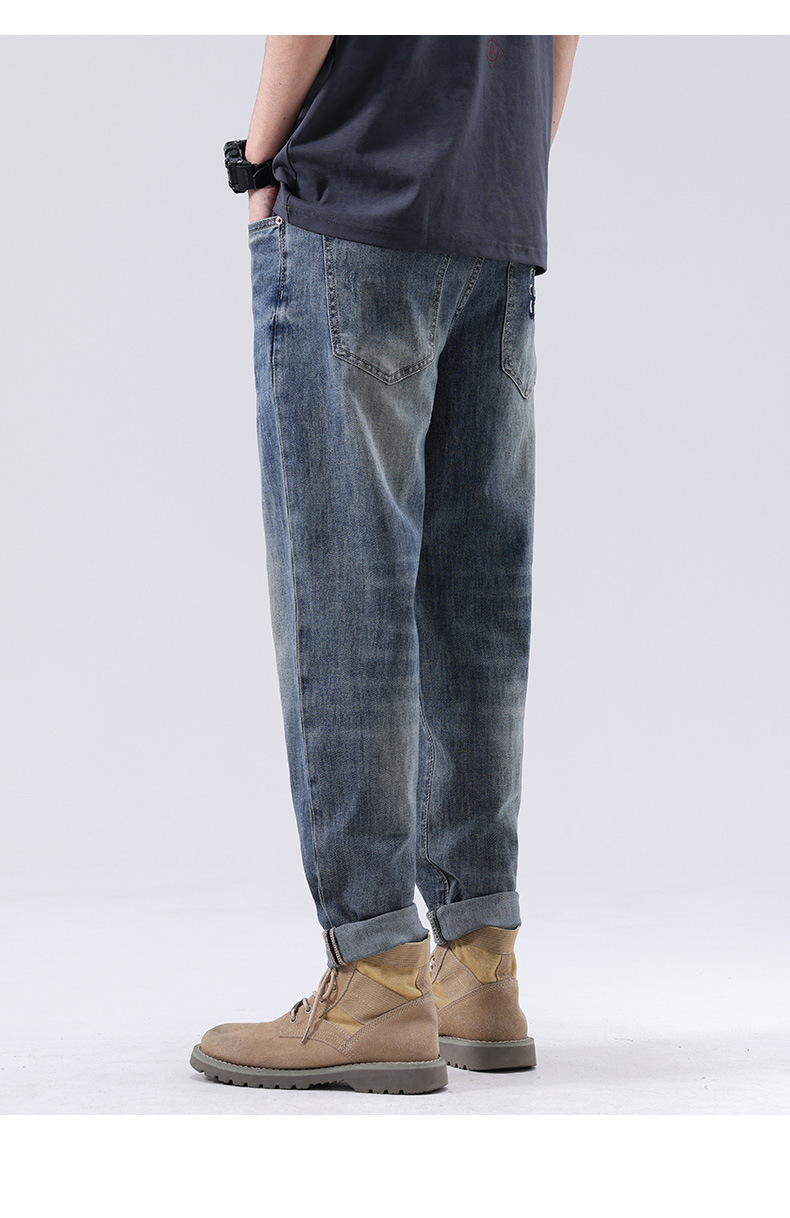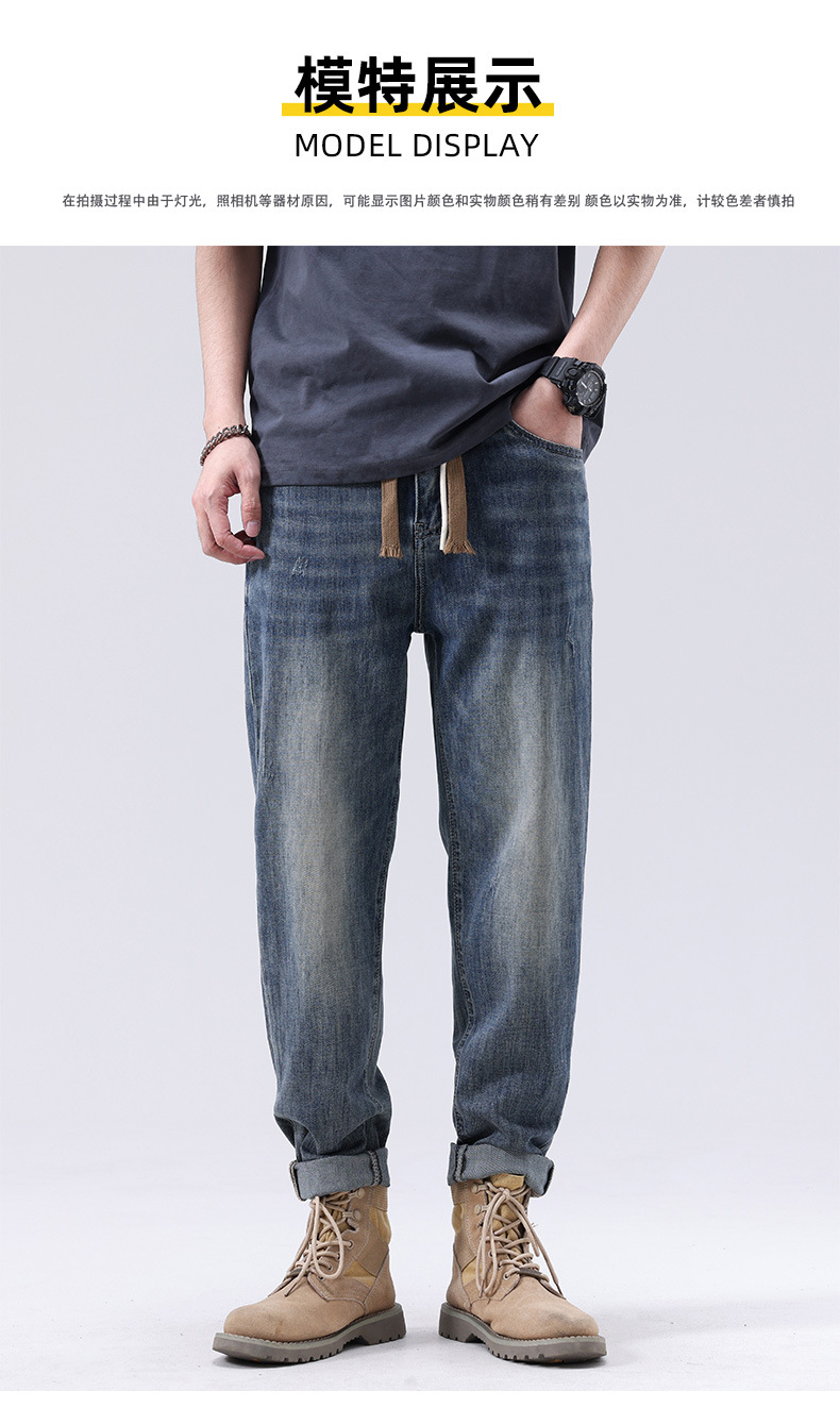 91102 | 대형 남성 여름 새로운 중공업 세척 청바지 느슨한 향수 레트로 스트레치 얇은 바지스토어 가기