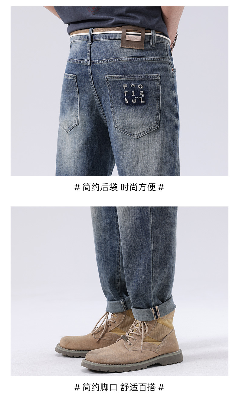 91102 | 대형 남성 여름 새로운 중공업 세척 청바지 느슨한 향수 레트로 스트레치 얇은 바지