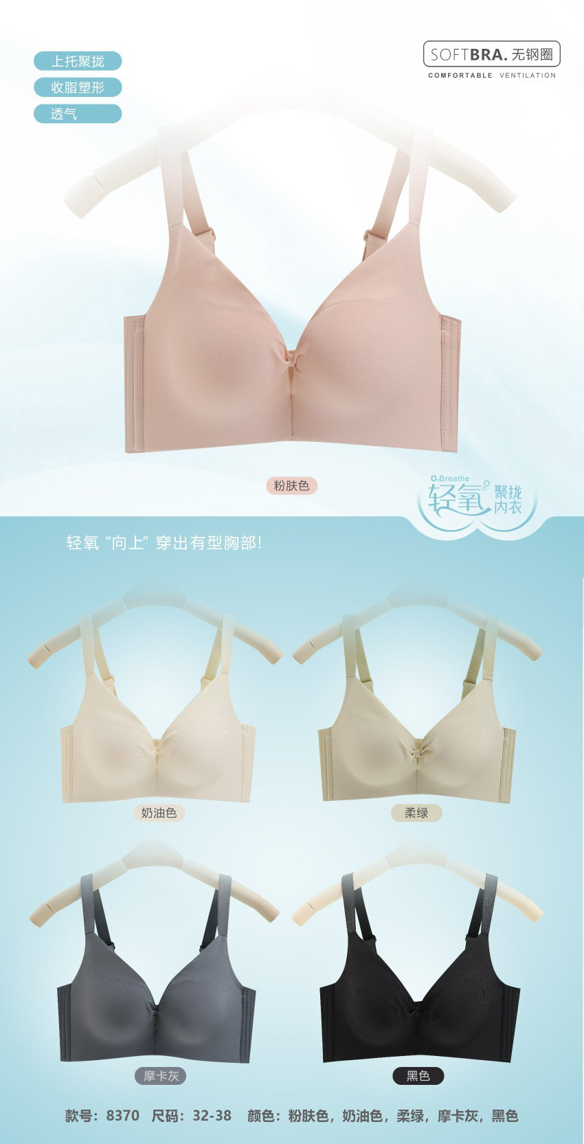 만치잉 8370B 브라, 무봉제 광택 소형 가슴 모아주는 중간 두께 컵, 와이어 없음, 조절 가능, 섹시한 딥 V 속옷스토어 가기