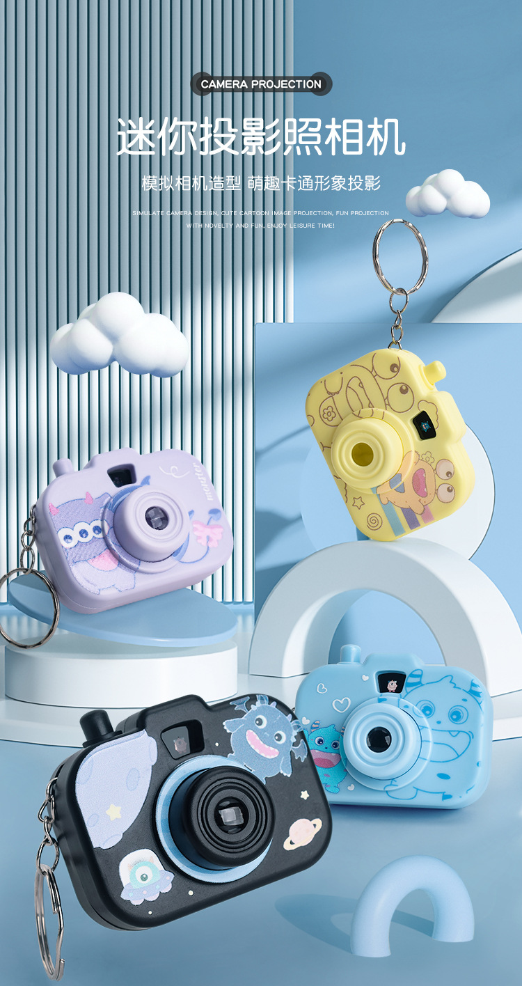 창조적 인 괴물 세 눈 괴물 시뮬레이션 프로젝션 카메라 장난감 키 체인 어린이 소녀 여학생 가방 만화 작은 펜던트