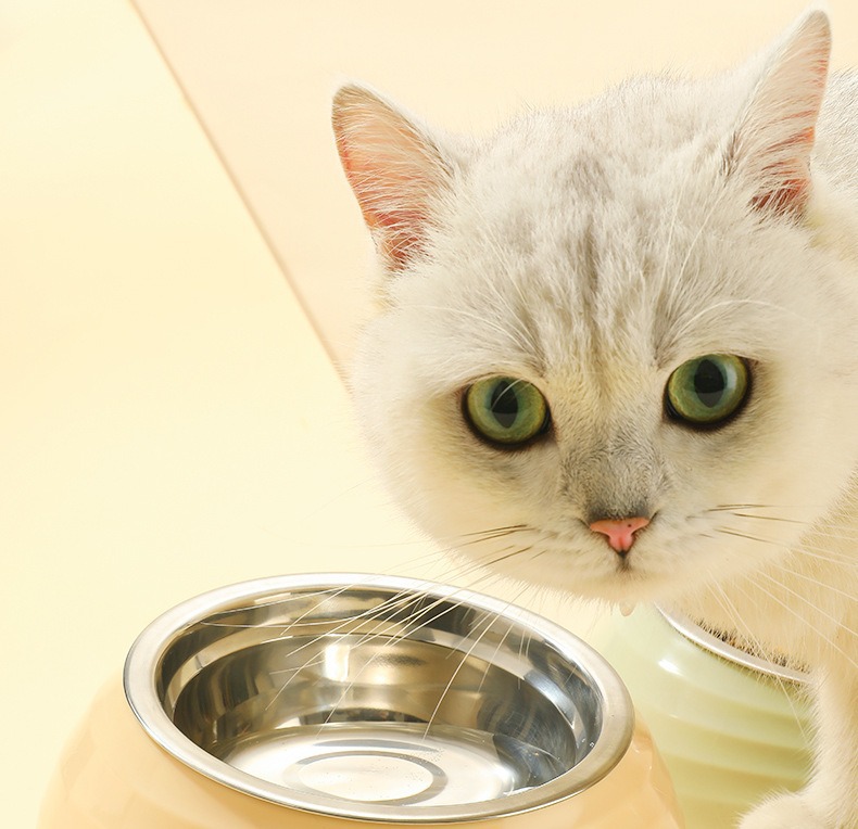 제조업체 도매 고양이 사료 그릇 개 그릇 식기 뒤집힘 방지 스테인레스 스틸 그릇 피더 목 보호대 경사 입 애완 동물 용품스토어 가기