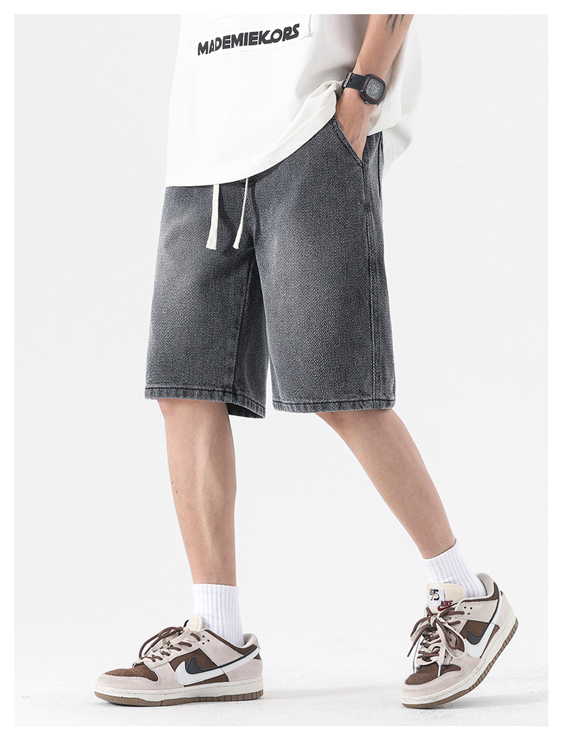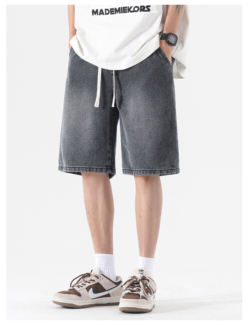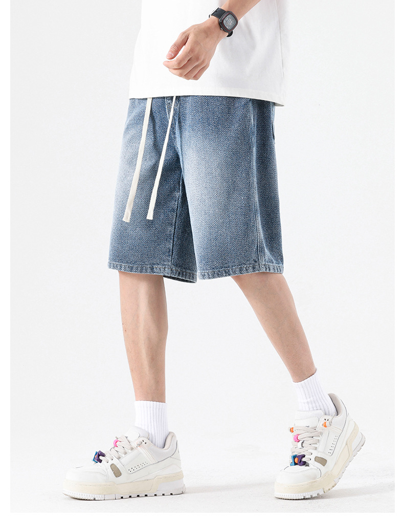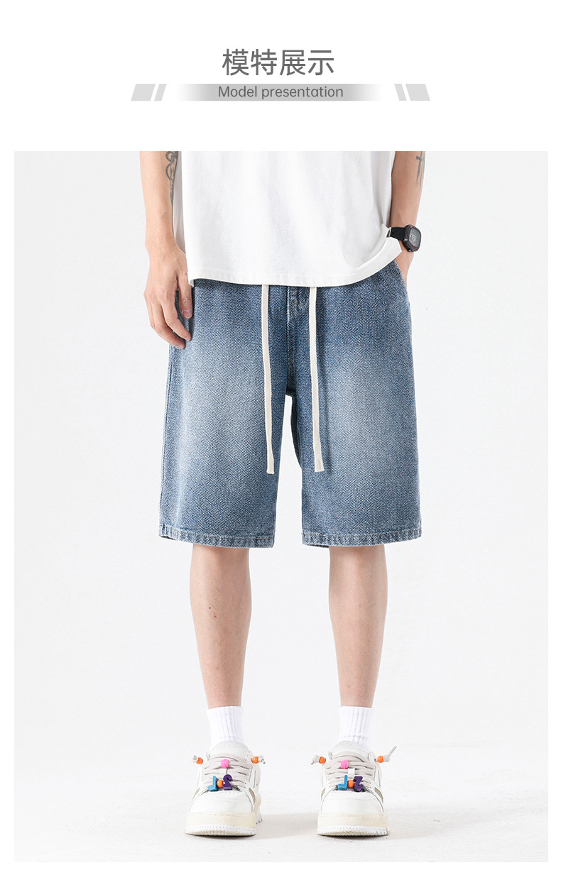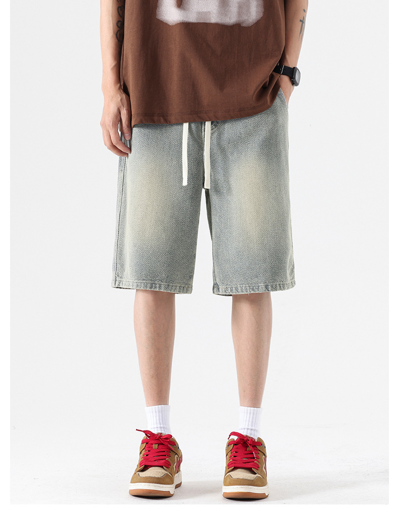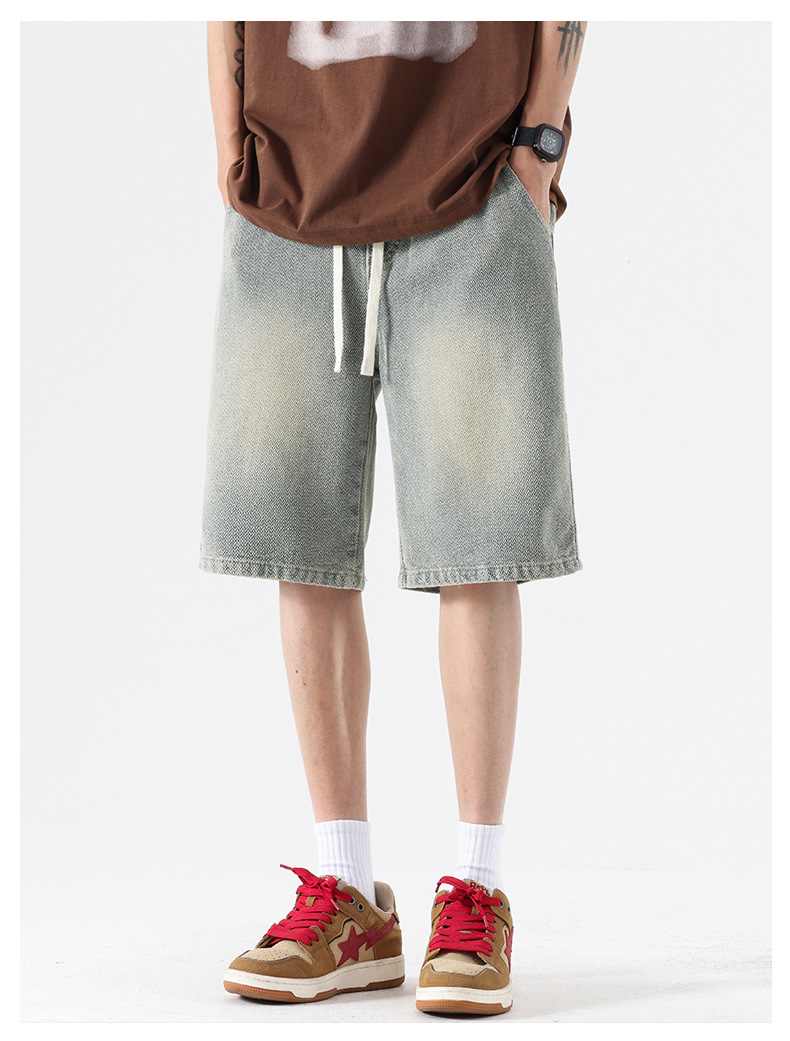 스타 패턴 데님 반바지 남성 청소년 패션 브랜드 새로운 여름 얇은 느슨한 복고풍 빨래 바지스토어 가기