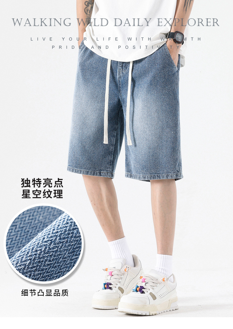 스타 패턴 데님 반바지 남성 청소년 패션 브랜드 새로운 여름 얇은 느슨한 복고풍 빨래 바지