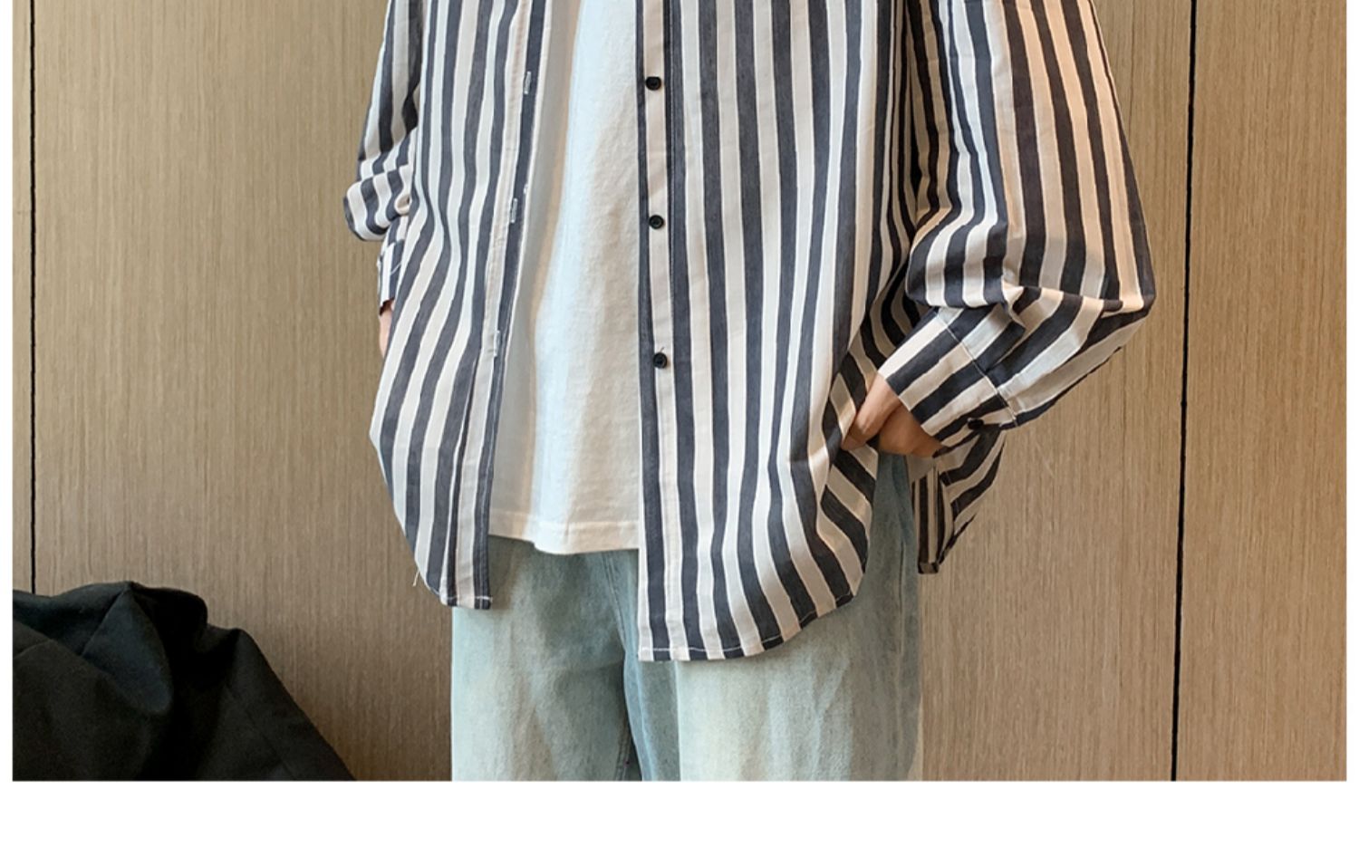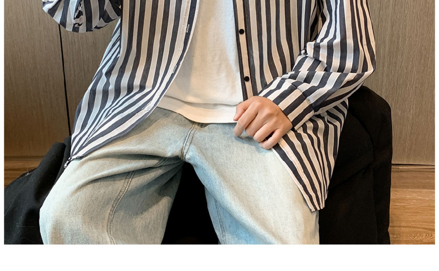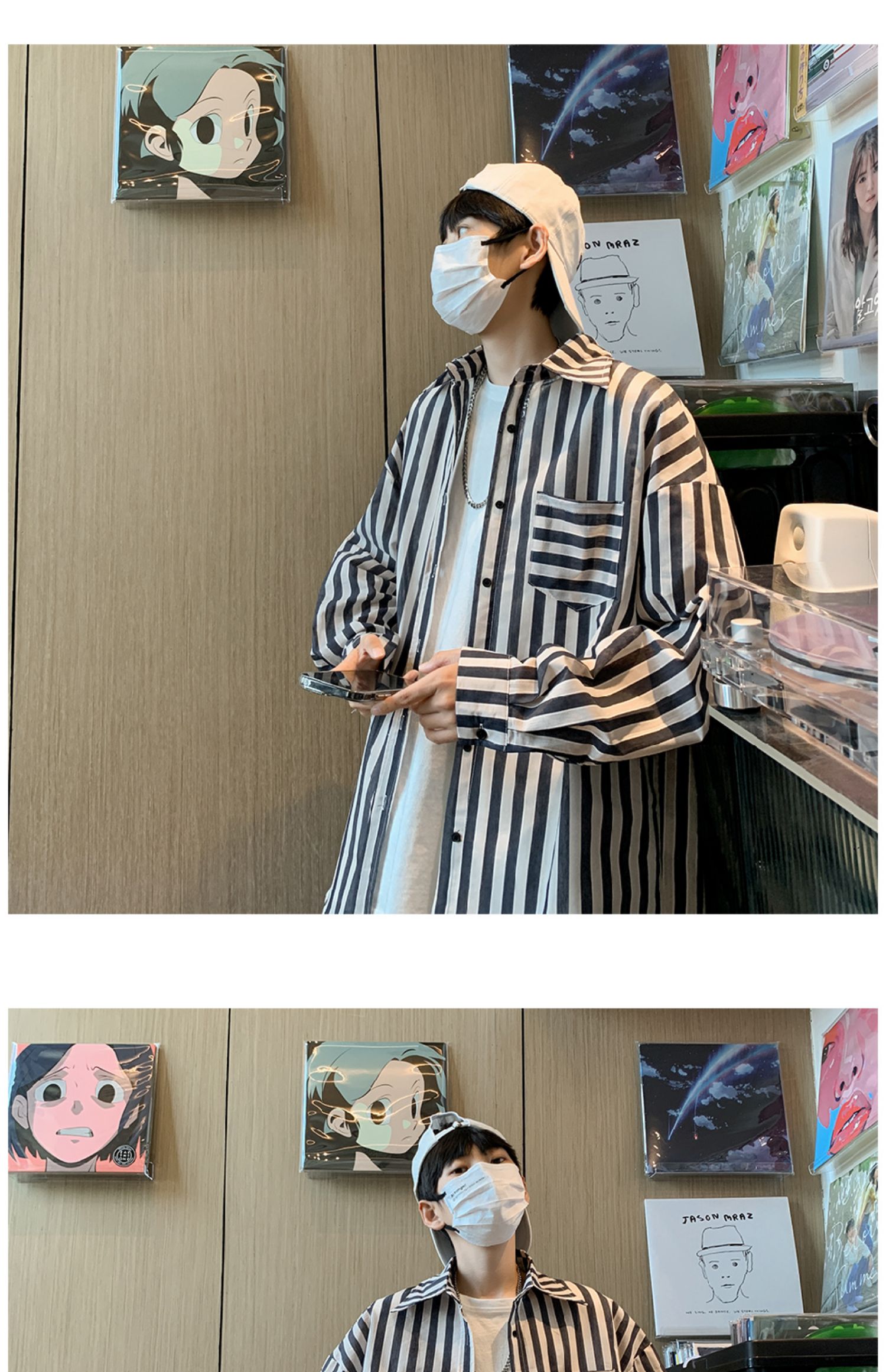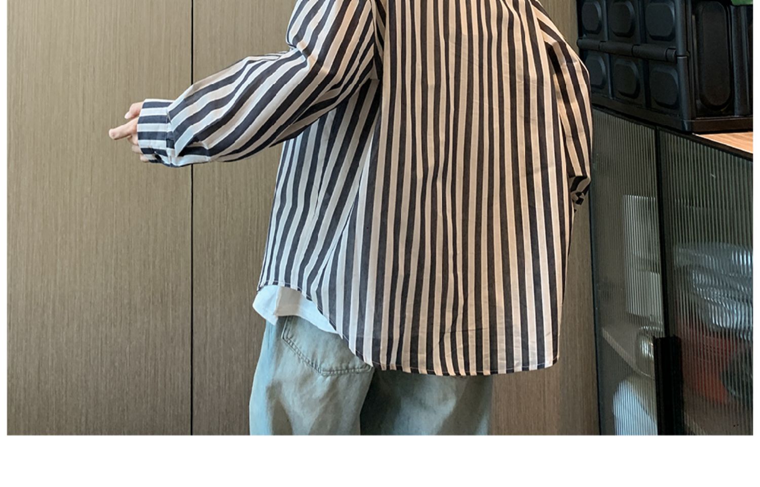 컬러 매칭 스트라이프 셔츠 남성용 봄과 여름 얇은 느슨한 긴팔 셔츠 홍콩 스타일 인스타그램 인기 브랜드 올매치 캐주얼 재킷스토어 가기