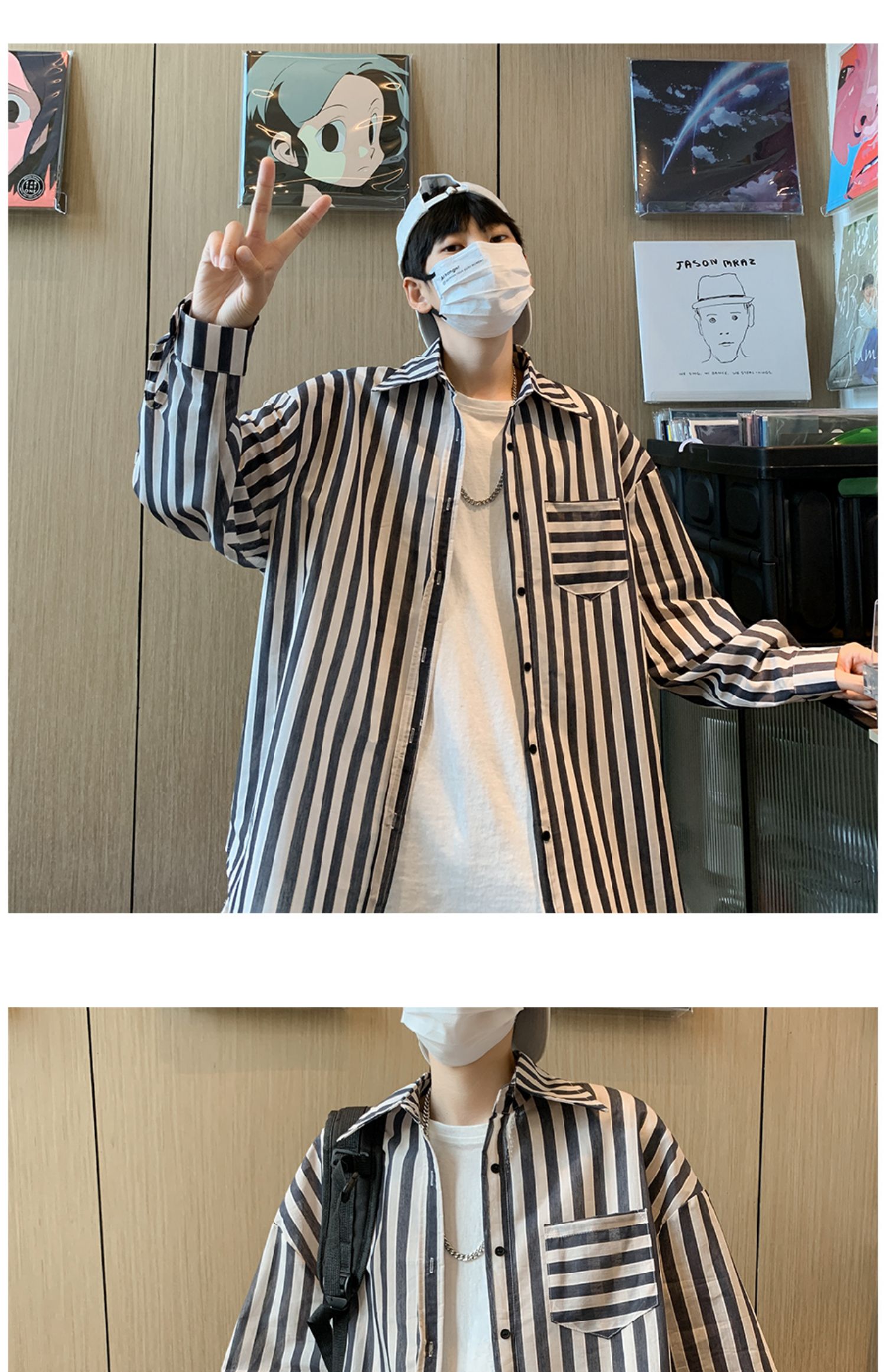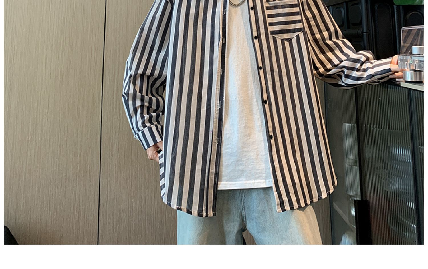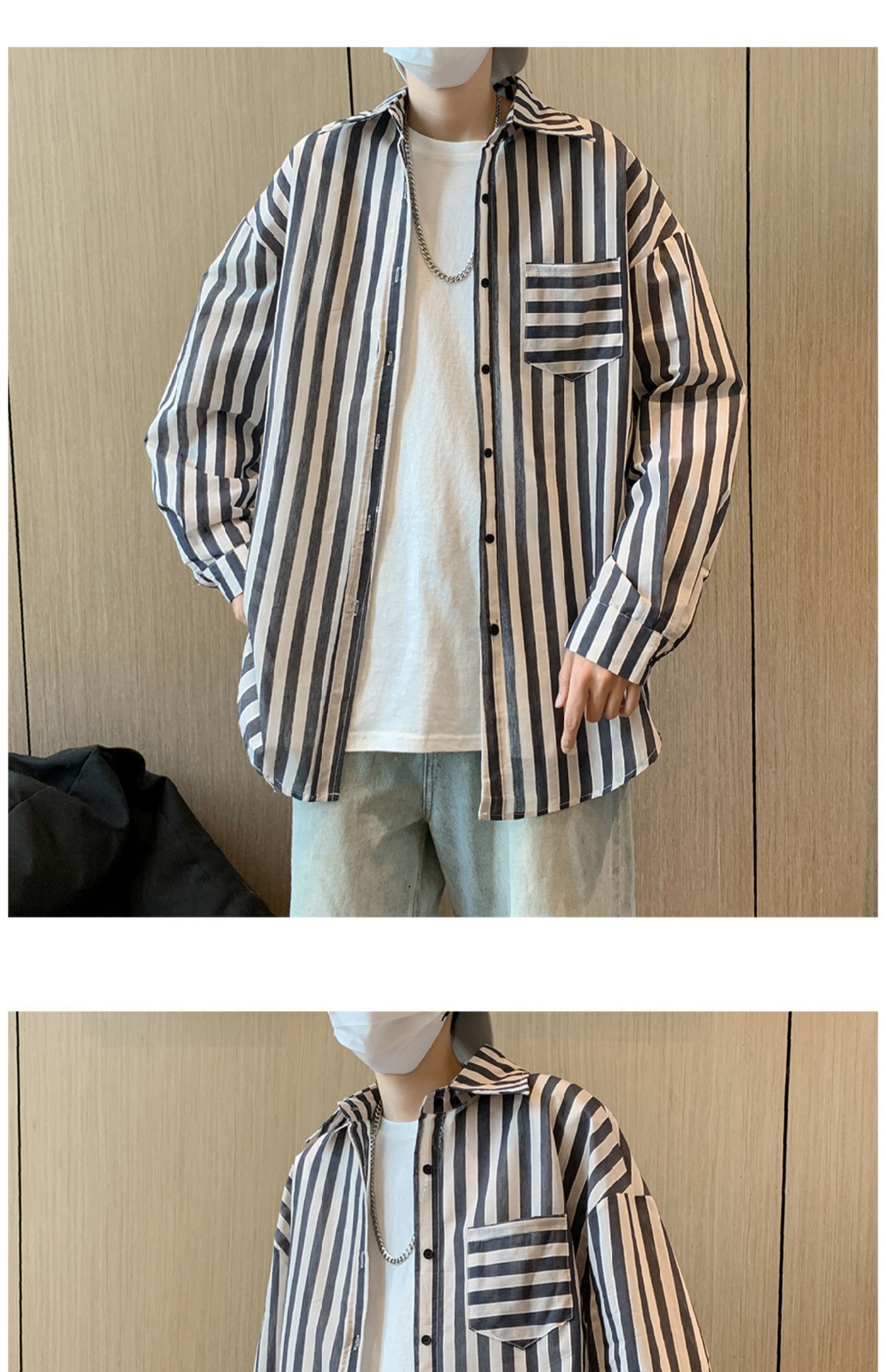 컬러 매칭 스트라이프 셔츠 남성용 봄과 여름 얇은 느슨한 긴팔 셔츠 홍콩 스타일 인스타그램 인기 브랜드 올매치 캐주얼 재킷스토어 가기