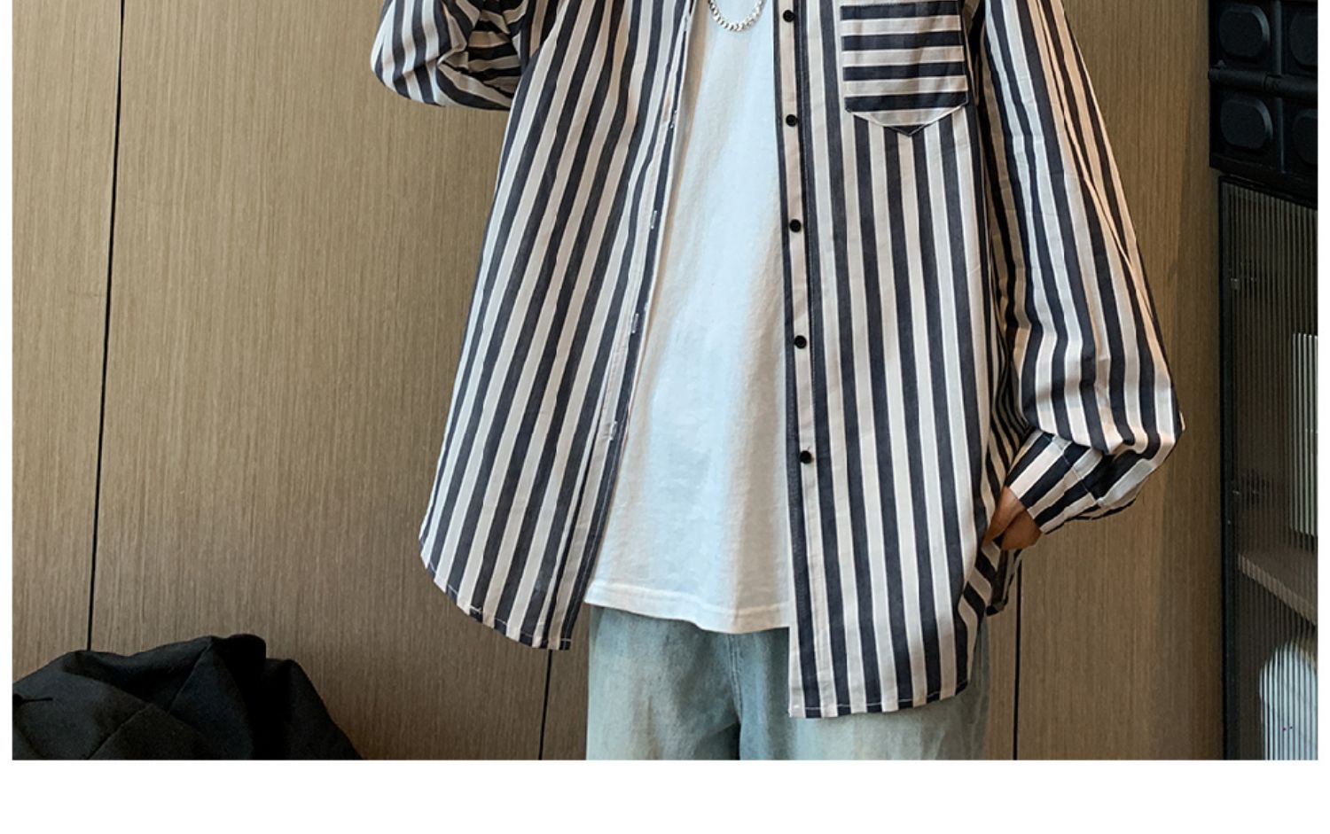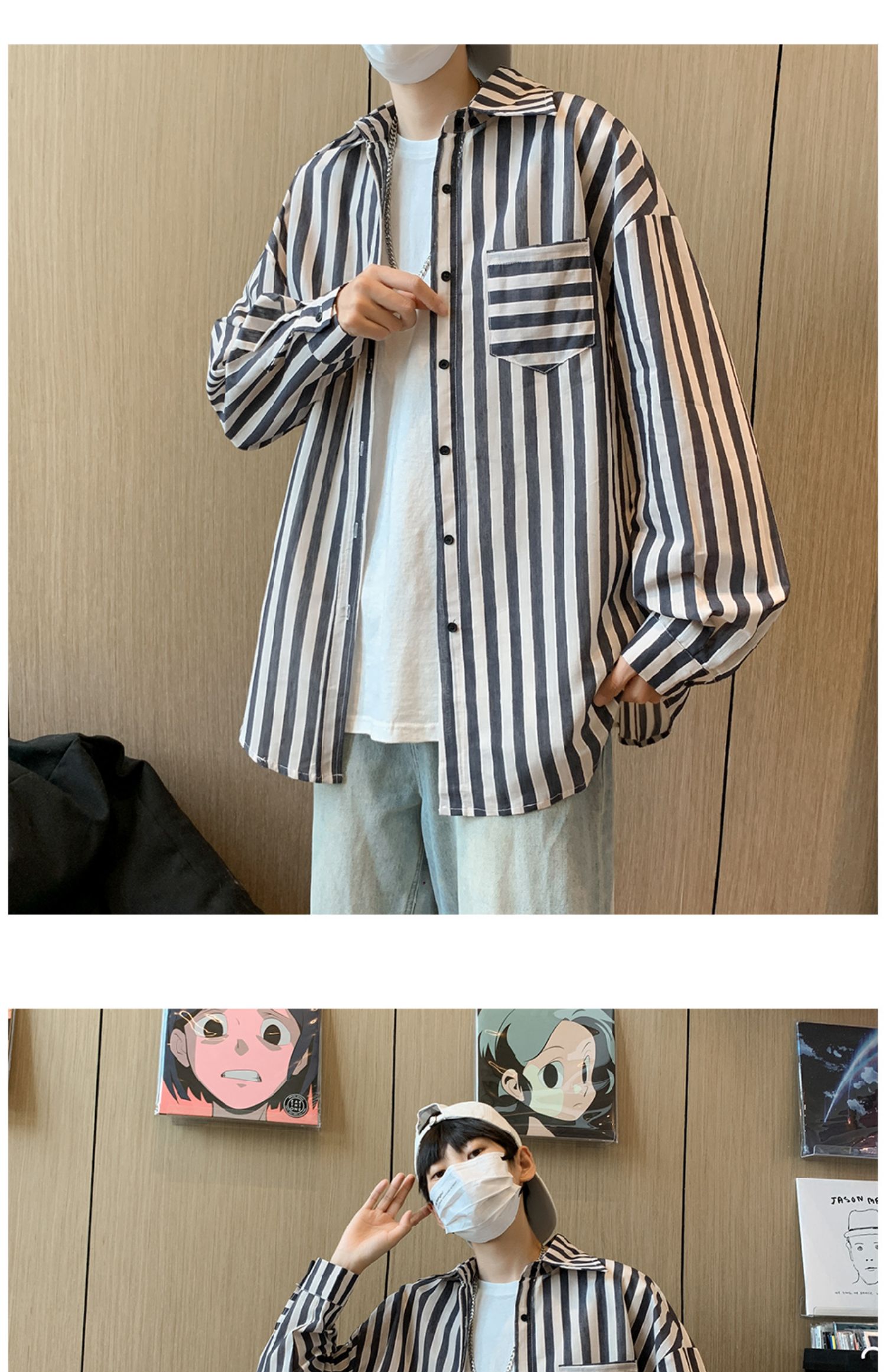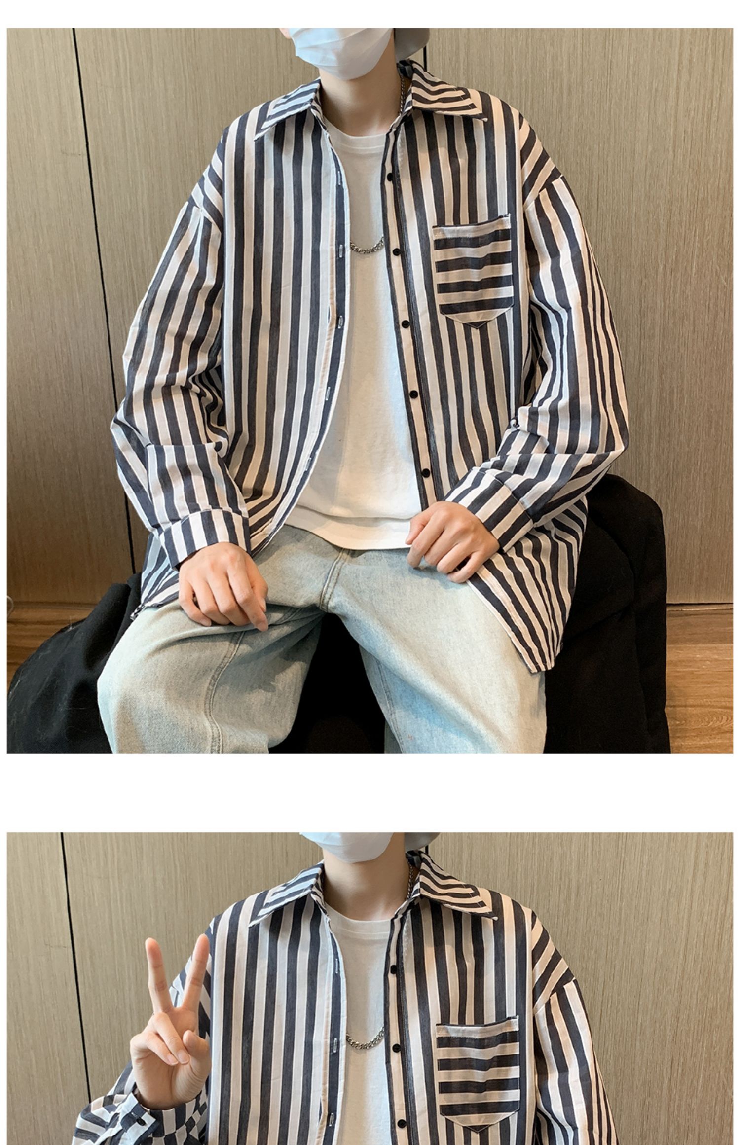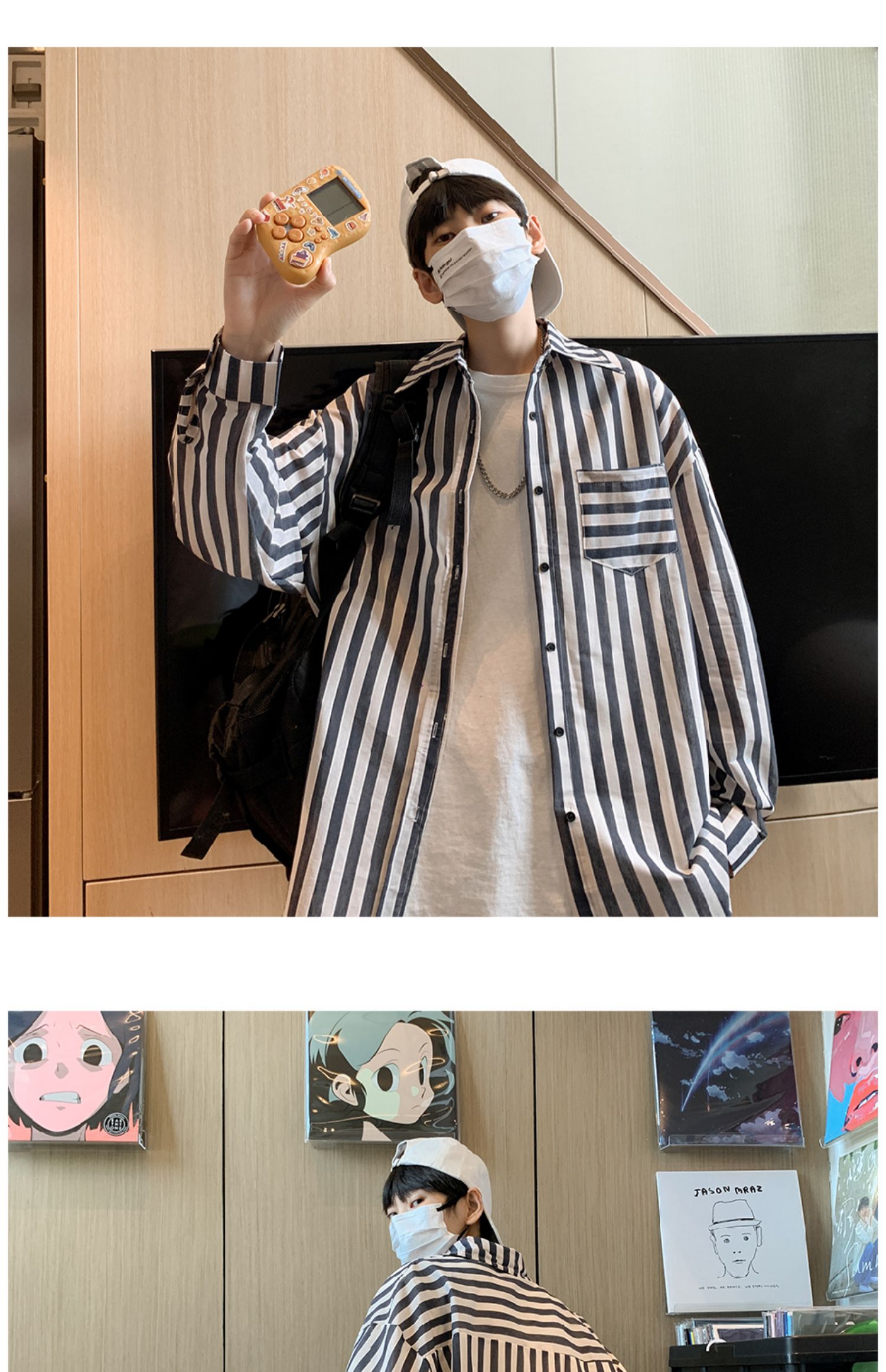 컬러 매칭 스트라이프 셔츠 남성용 봄과 여름 얇은 느슨한 긴팔 셔츠 홍콩 스타일 인스타그램 인기 브랜드 올매치 캐주얼 재킷스토어 가기