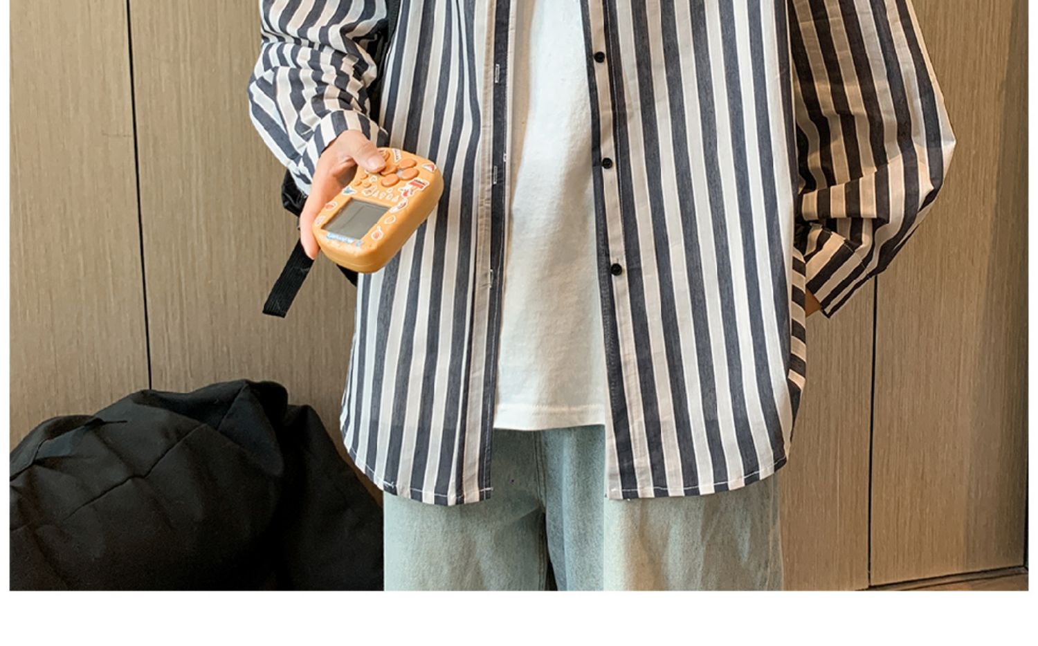 컬러 매칭 스트라이프 셔츠 남성용 봄과 여름 얇은 느슨한 긴팔 셔츠 홍콩 스타일 인스타그램 인기 브랜드 올매치 캐주얼 재킷