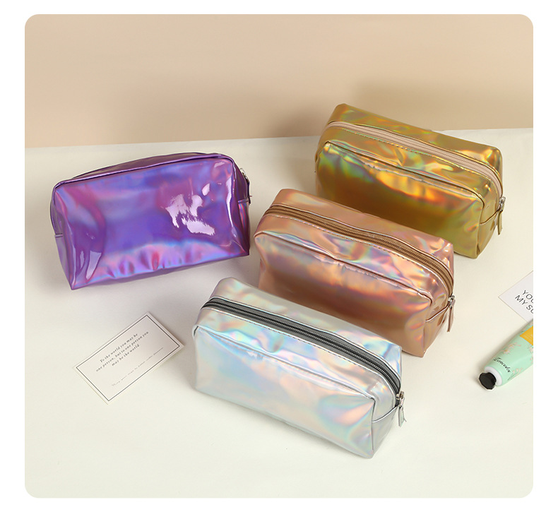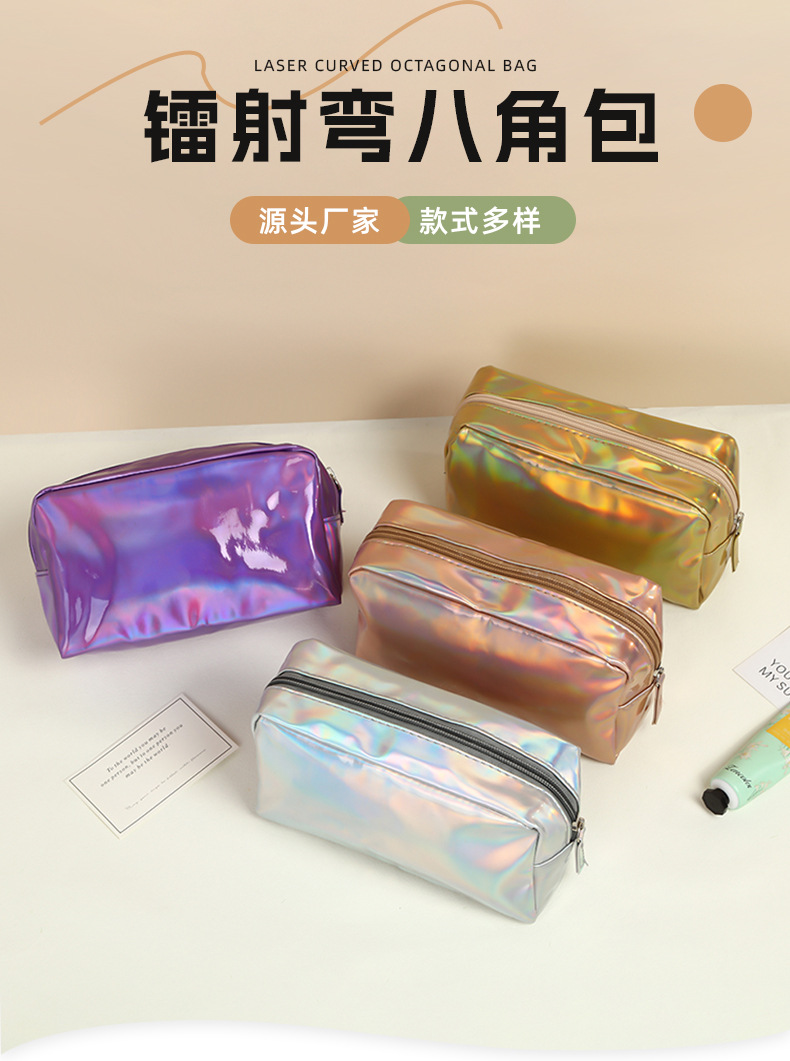 방수 레이저 화장품 가방 PU 가죽 팔각형 화장품 파우치 여행 출장용 베개 대용량 수납
