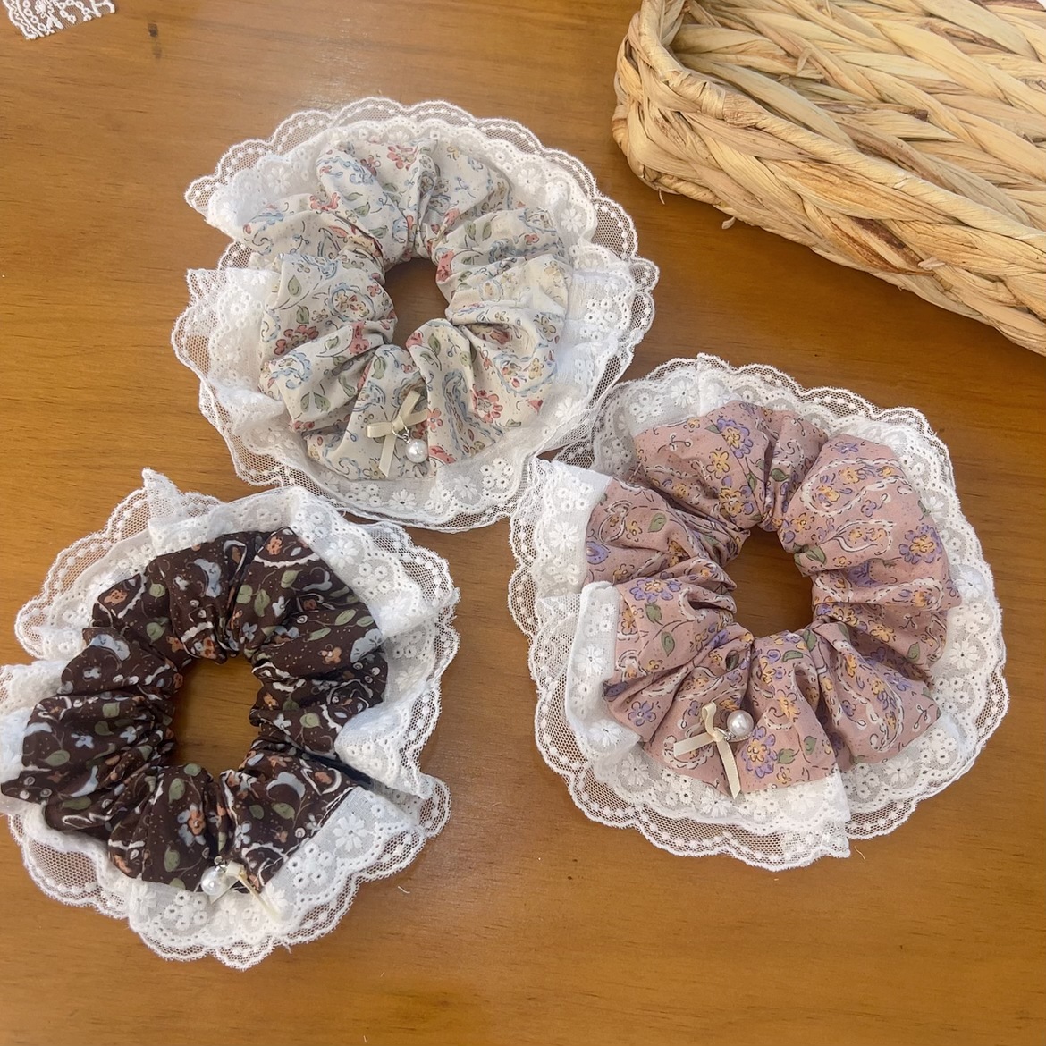새로운 도착 목회 스타일 패브릭 플로럴 레이스 보우 펜던트 빈티지 대형 직분 헤어 링 달콤한 포니 테일 헤어 액세서리스토어 가기