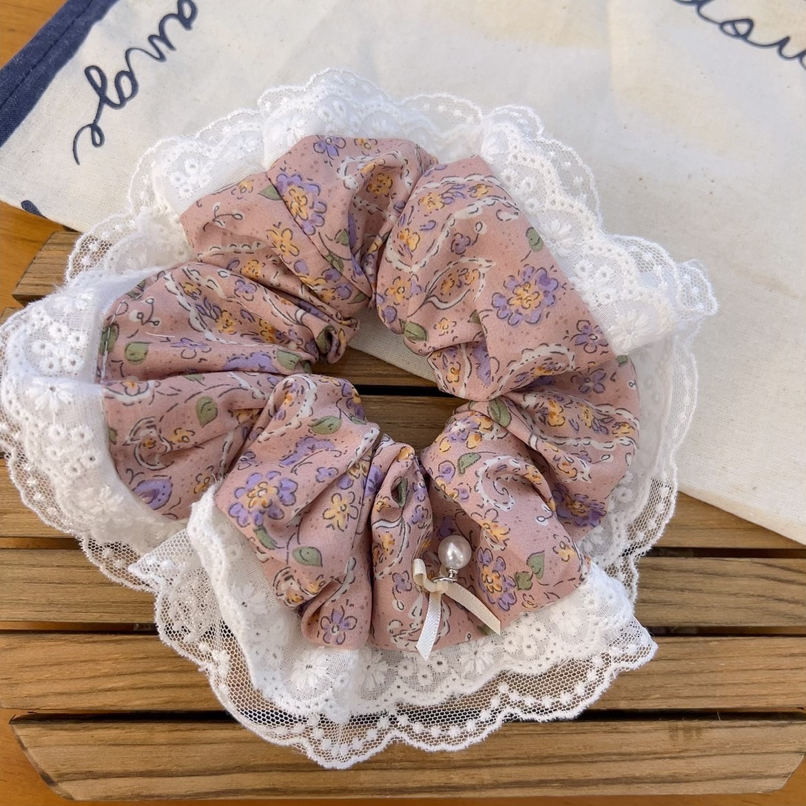 새로운 도착 목회 스타일 패브릭 플로럴 레이스 보우 펜던트 빈티지 대형 직분 헤어 링 달콤한 포니 테일 헤어 액세서리