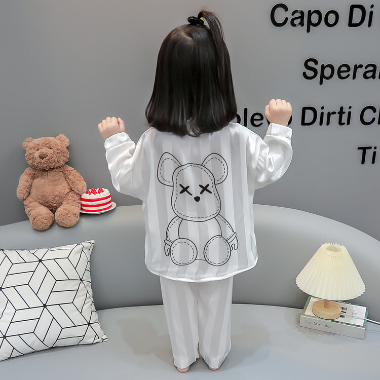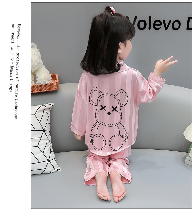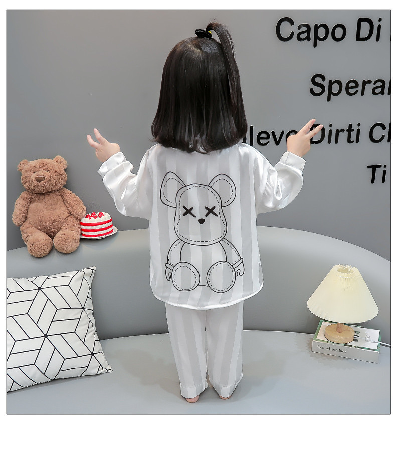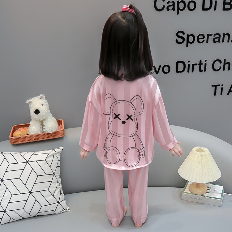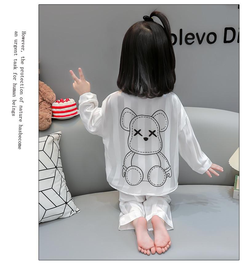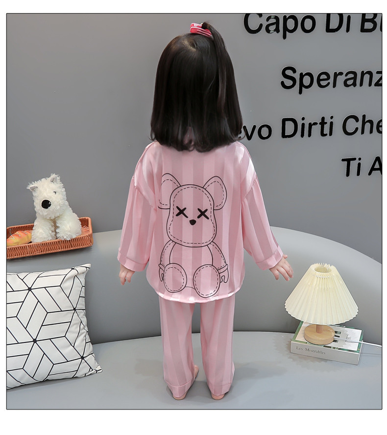 가을 긴 소매 소녀 아이스 실크 아기 만화 얇은 작은 소녀 카디건 세트 어린이 서양식 홈 옷 세트스토어 가기