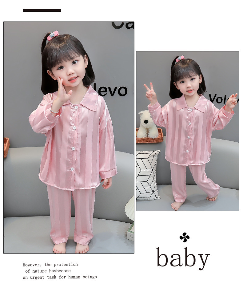 가을 긴 소매 소녀 아이스 실크 아기 만화 얇은 작은 소녀 카디건 세트 어린이 서양식 홈 옷 세트