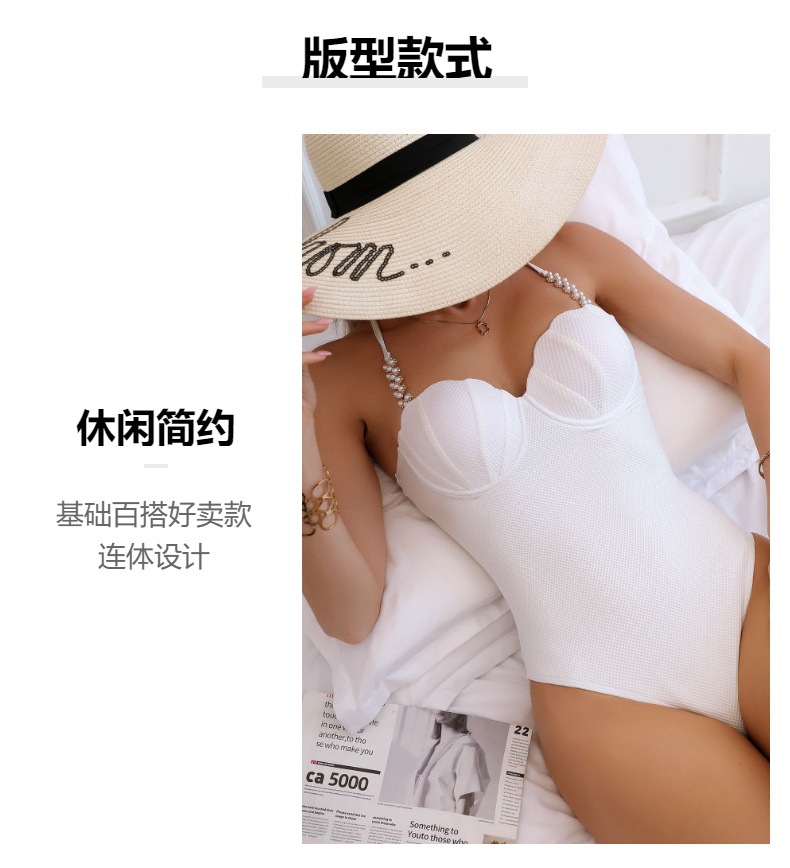 새로운 수영복, 여성스러운 원피스 솔리드 컬러 유럽 및 미국 비키니, 순수한 욕망, 고급 해변 휴가 수영복, 크로스보더스토어 가기