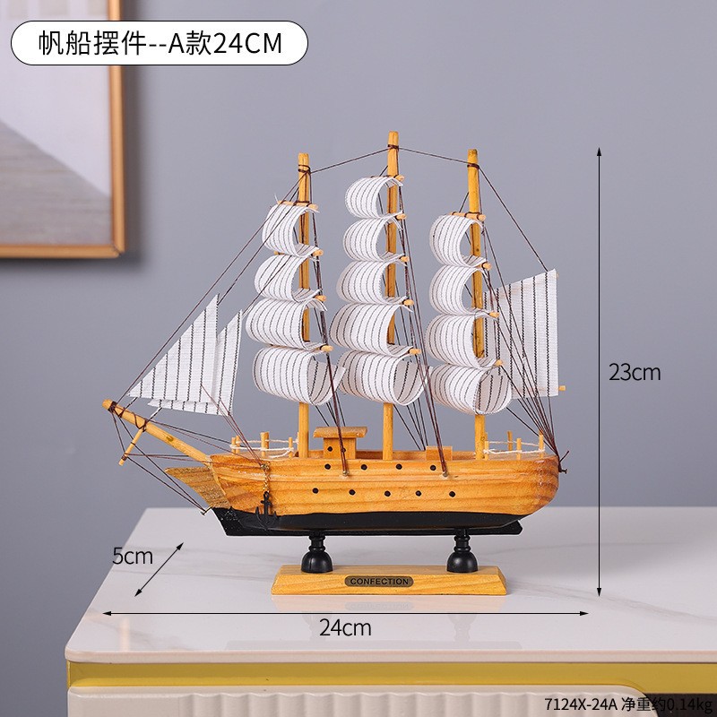 지중해 나무 항해 모델 부드러운 항해 홈 거실 와인 캐비닛 나무 보트 장식품 관광 기념 선물스토어 가기
