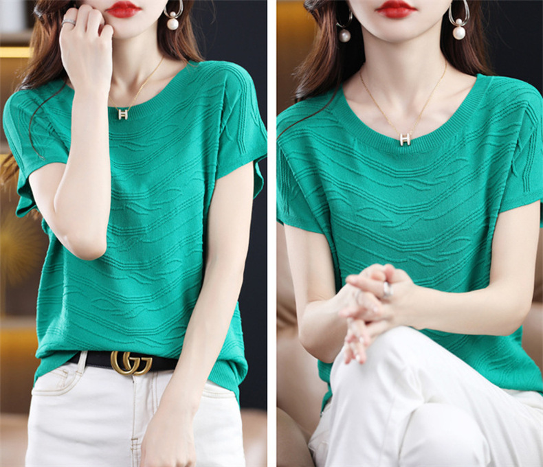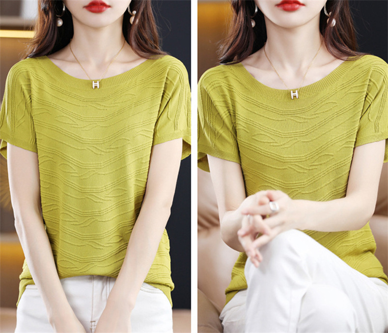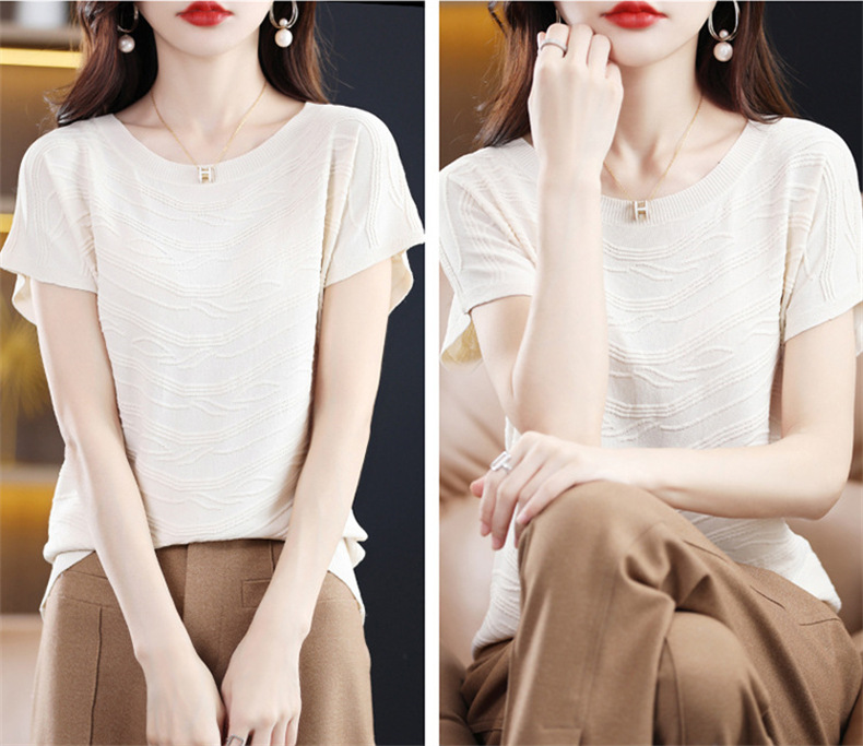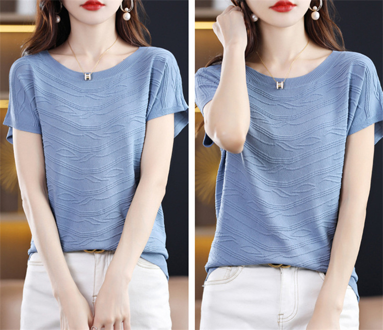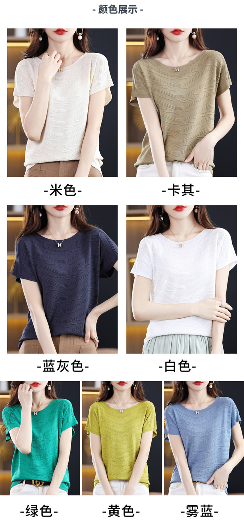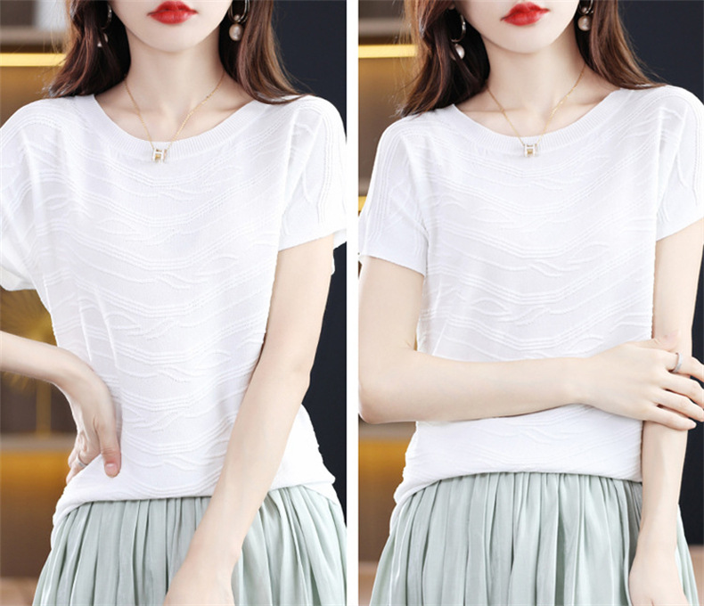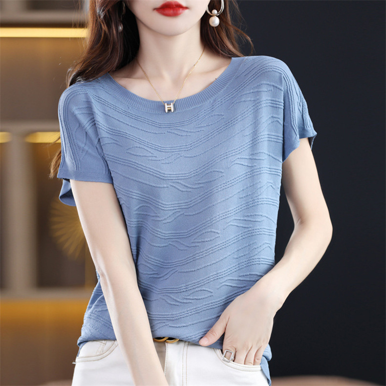 아이스 실크 반팔 티셔츠 여성 여름 2024 새로운 여성 질감 니트 티셔츠 탑 얇은베이스 셔츠 도매